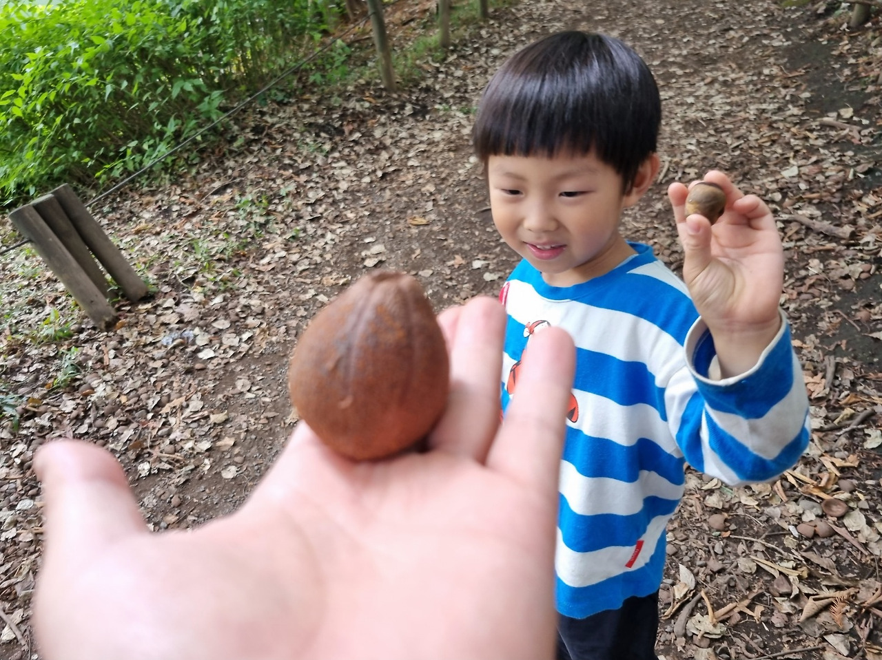 예쁜 도토리 몇 개는 엄마 주겠다며 가져왔어요.