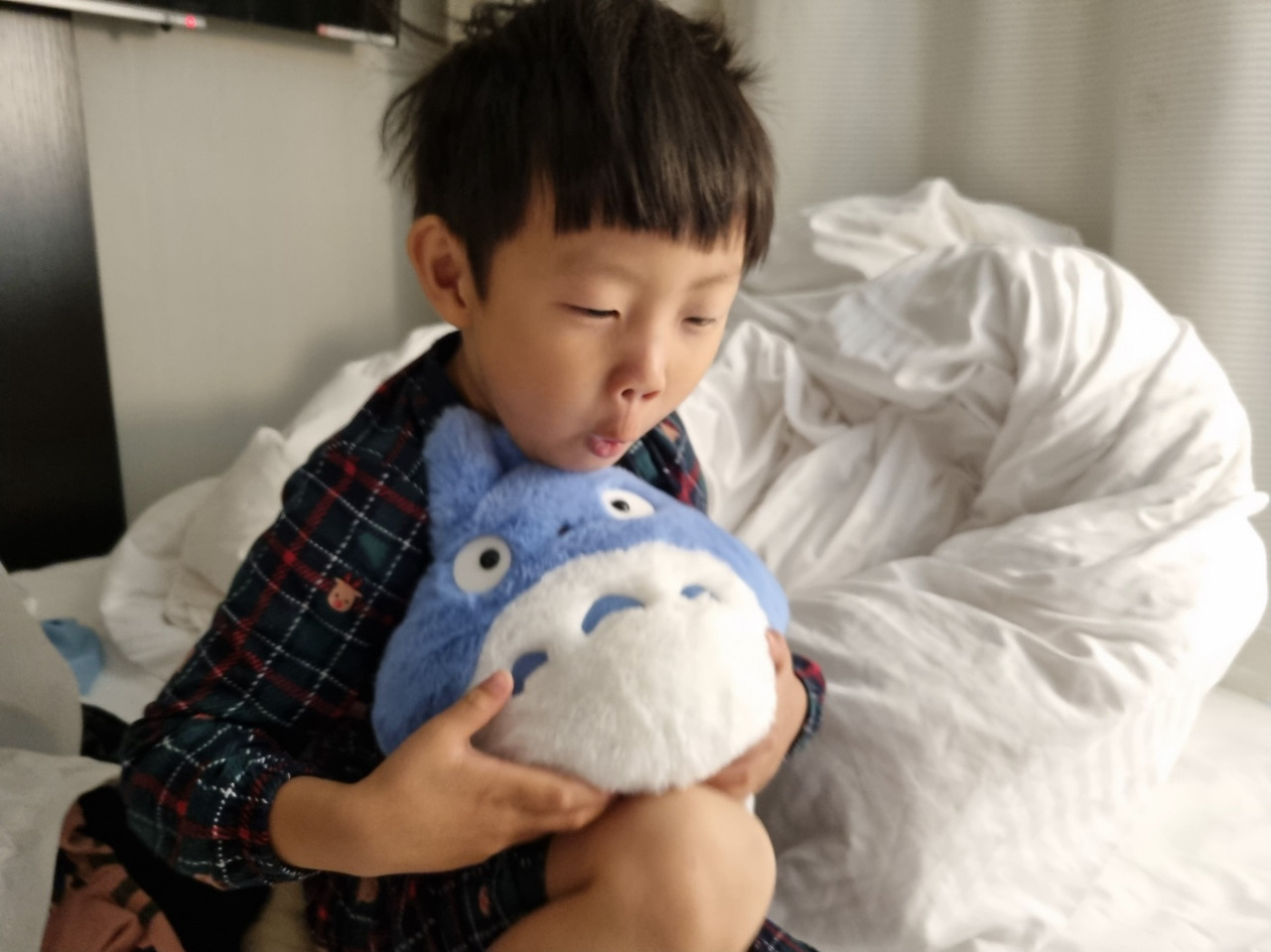 숙소로 돌아오는 길에 토토로 인형 껴안고