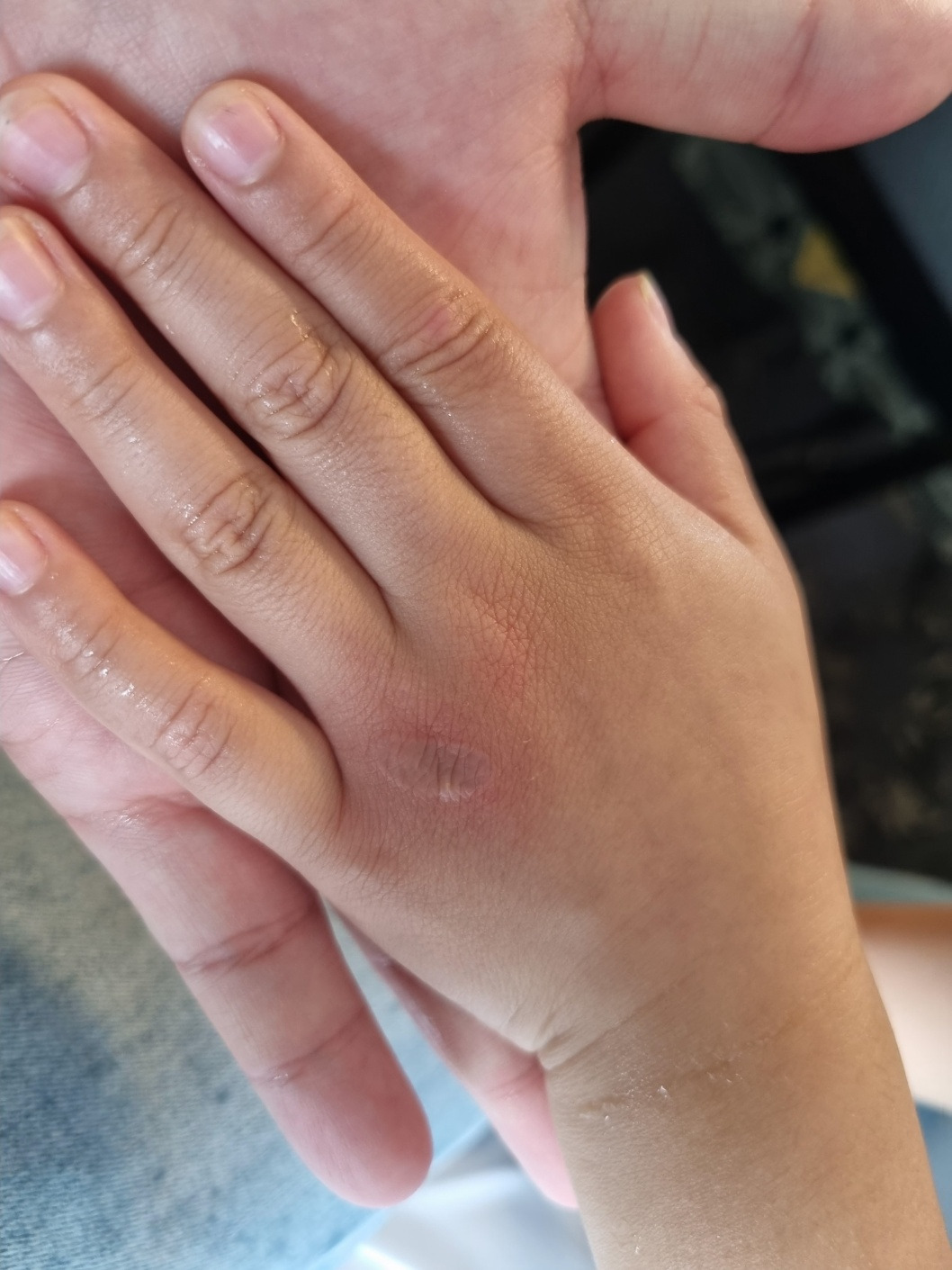 손등에 화상을 좀 입었어요.