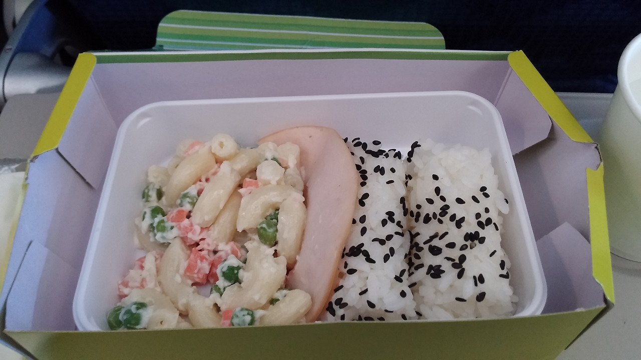 비행기가 이륙하자마자 기내식이 나왔어요.