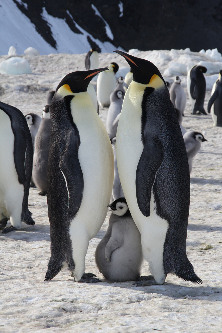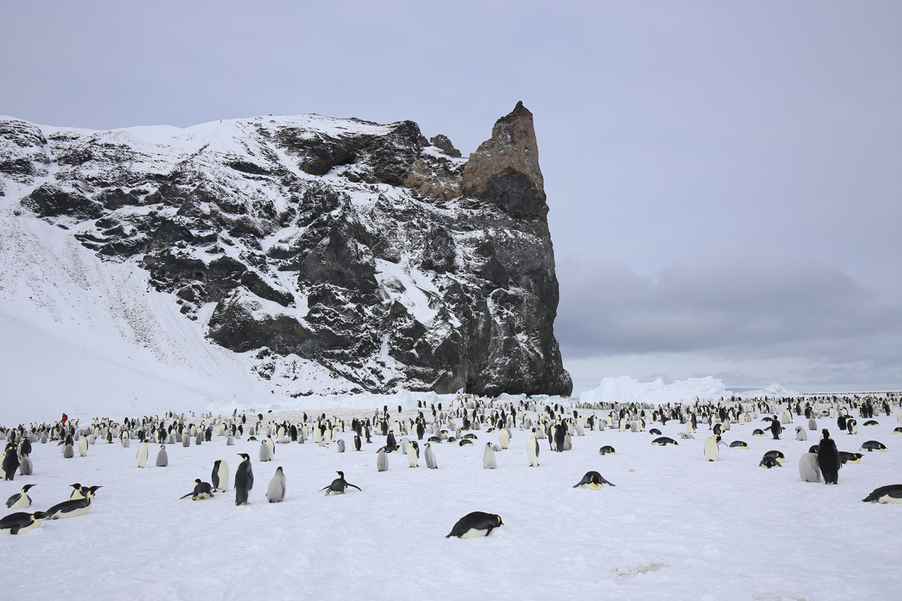장보고기지에서 헬리콥터를 타고 십여분 날아 거대한 절벽아래 넓게 펼쳐진 해빙에 내렸다. 바다에 갇힌 거대한 유빙이 햇빛을 받아 짙은 파란색 몸을 드러내었다. 바람도 없이 맑은날. 눈에 반사된 햇빛이 눈부시다. 멀리서 새로운 방문자에 호기심을 느낀 이곳의 원주민들이 열을지어 몰려오고 있었다. 하얀배와 검은 등, 목부터 이어지는 노란색 무늬, 붉은색을 띤 긴 부리. 어설픈 걸음걸이. 황제펭귄이다.