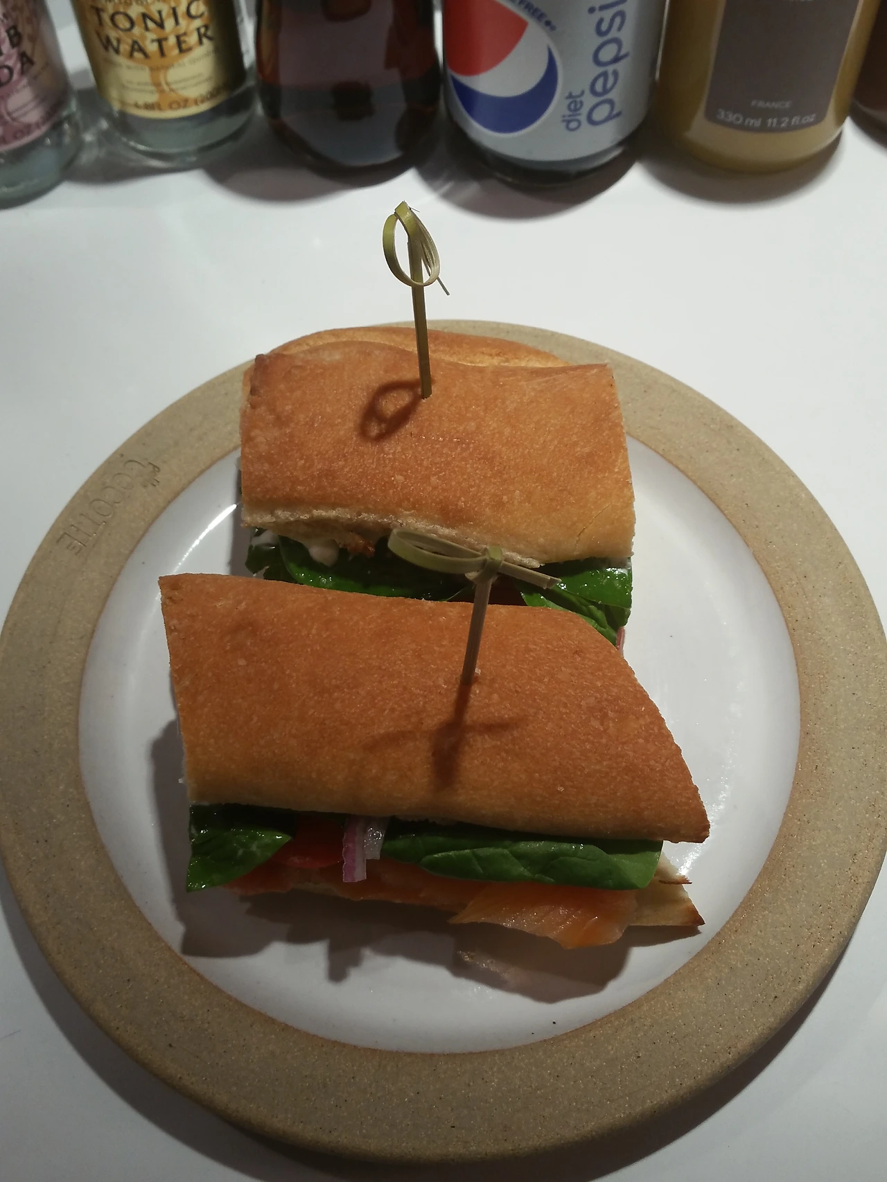 뽀글이 한잔과 함께 연어 샌드위치!! 그리고 마지막에 커피 한 잔을 마셨다..