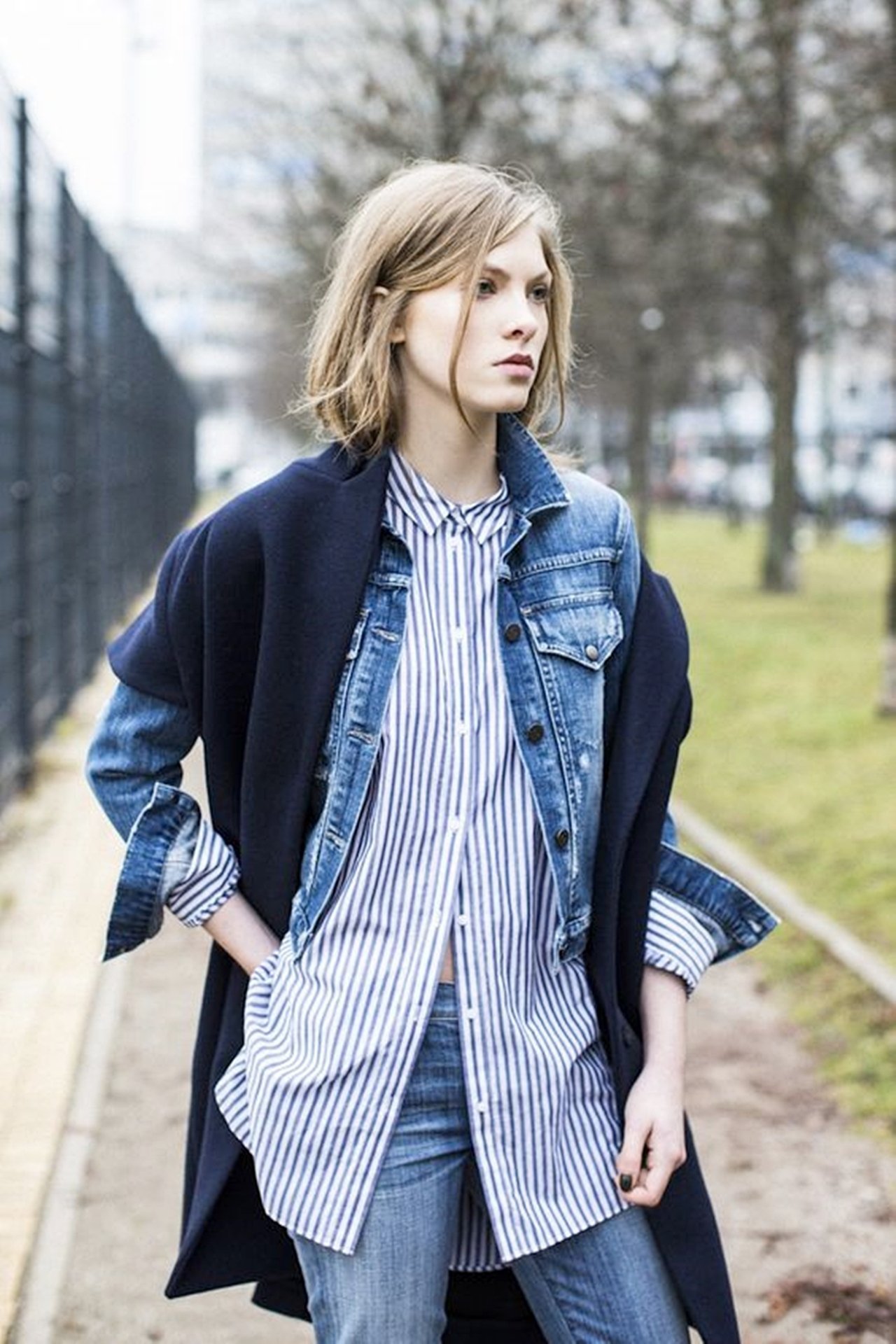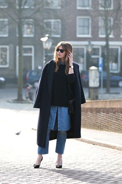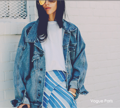 개인적으로는 니트로된 블랙 붐버를 입고 와이드한 핏 혹은 배기로 나온 데님 혹은 미디 데님스커트에 탑은 화이트셔츠 헉은 같은 데님 셔츠인데 패치가 많이 붙은 디자인을 추천한다.