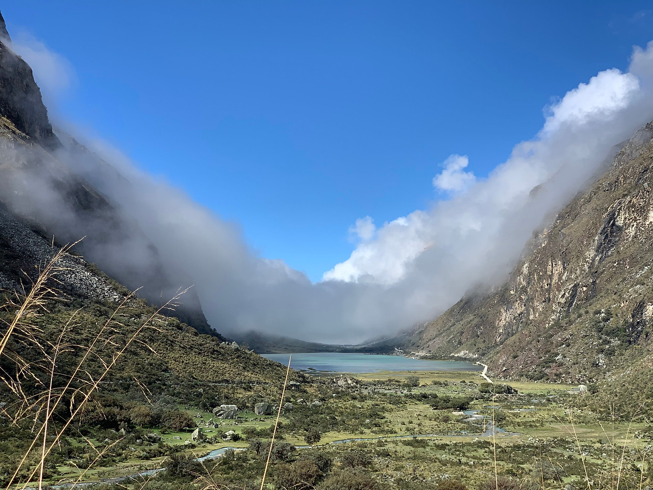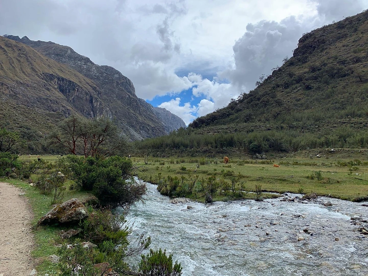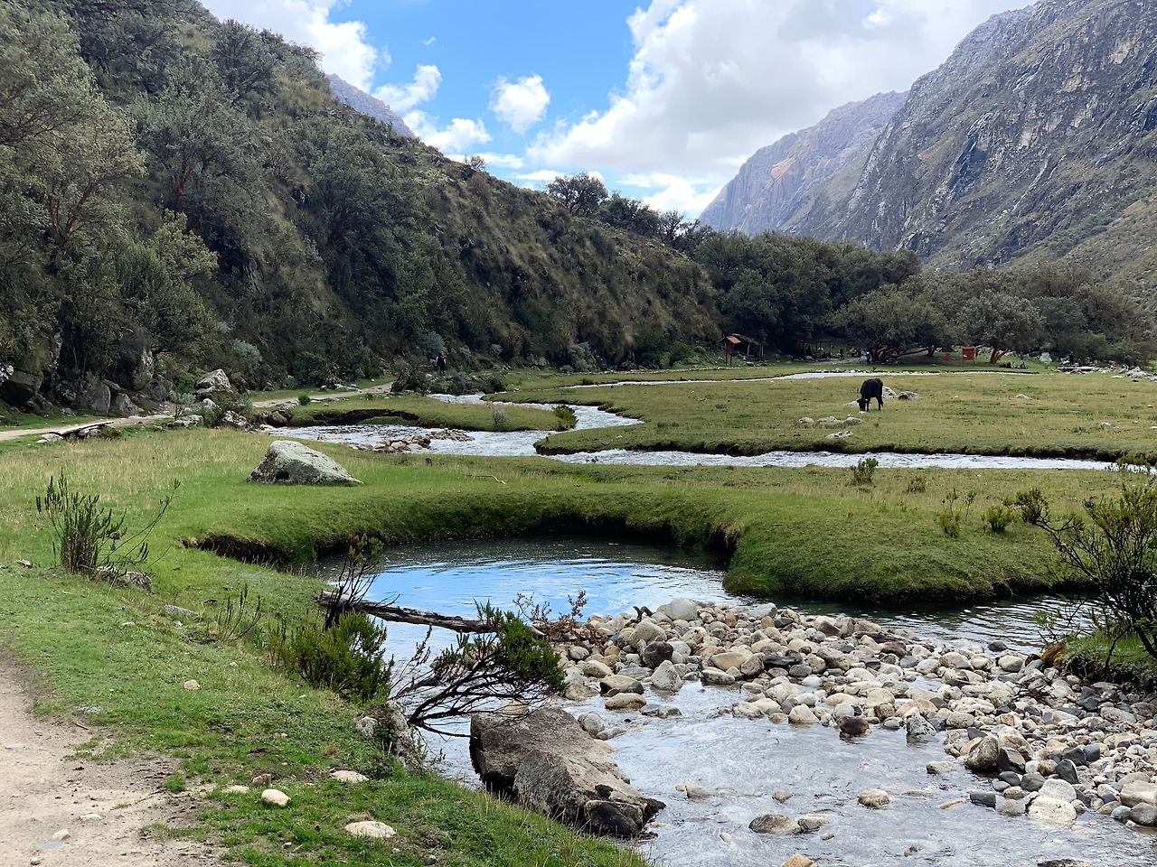 맛이 형편없기도 했지만, 69호수 트레킹에 앞서 굉장히 긴장한 탓에 음식을 넘길 수 없기도 했다. 고산병을 심하게 겪었다는 경험담이 10명 중 9명이었고, 체력에 자신이 없던 나는 걱정이 이만저만이 아니었다. 어떤 풍경을 눈에 담기 위해서 숨이 턱 밑까지 차오르는 괴로움과 어지러움과 두통을 참아내야 할까 라는 고민을 등산 직전까지 계속했던 것 같다. 오전 9시에 등산을 시작했다. 초반 코스는 평탄했다. 평원을 유유히 거니는 소 떼와 힘차게 흐르는 물을 지나며, 공간감각과 현실감을 잃었고 긴장감도 잠시 잃었다. 마치 티브이 속 <걸어서 세계 속으로>에 들어온 것 같았다. 그러나 평원지대가 끝나고, 본격적인 트레킹이 시작되자 정신이 아득해질 만큼 힘겨운 시간을 견뎌야 했다.