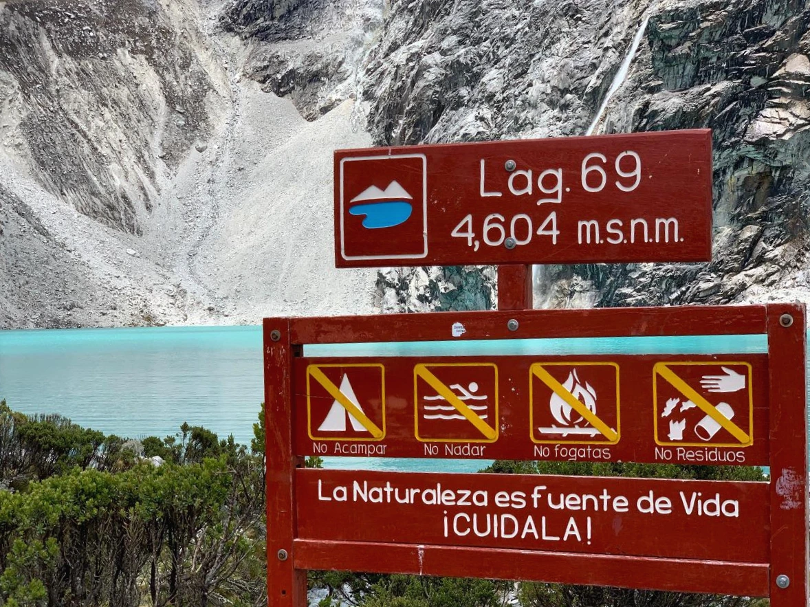 능선을 넘자 표지판이 69호수에 다다랐음을 가리키고 있었다. 그리고 저 멀리서 사람들의 환호성이 들려왔다. 그때부터 다리에 힘이 실리고 굽었던 허리가 펴지더니 가슴이 미친 듯이 두근거렸다(그냥 숨이 가빴겠지만...?). 이번에는 일부러 땅만 보고 걸었다. 69호수의 모습을 단 번에 한눈에 담고 싶어서 속으로 혼자만의 카운트를 시작했고, 역시나 앞사람의 발뒤꿈치를 쫓으며 따라갔다. 그리고 앞 선 이의 짧은 탄성 소리가 터져 나옴과 동시에 나는 고개를 들었다. 마침내 정상에 위치한 호수에 닿은 것이다.