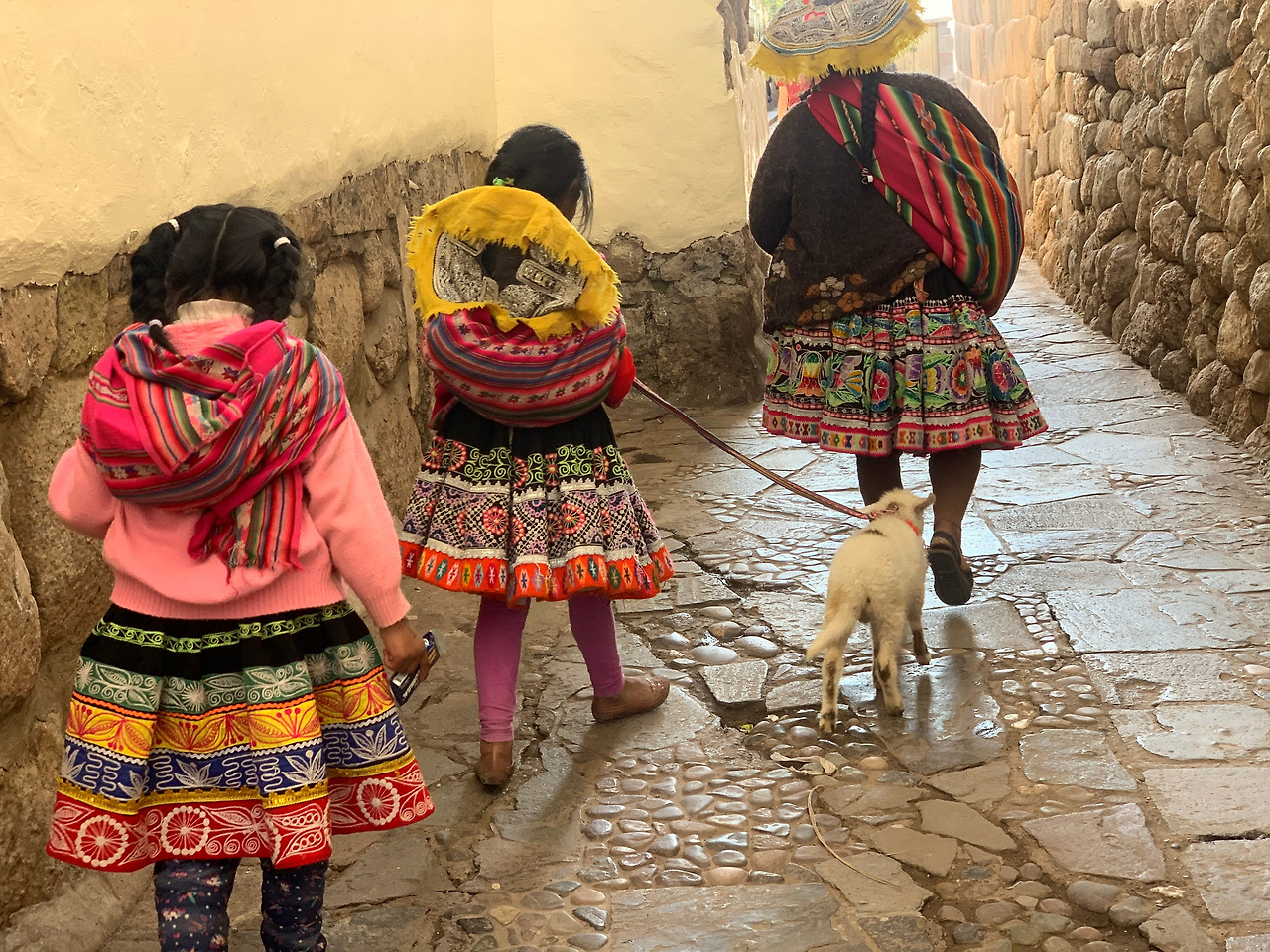 기분 좋은 식사를 마치고 나니 기운이 생겨 쿠스코의 골목을 누볐다. 쿠스코는 90프로 이상이 잉카인들의 후손인 인디오들인데, 그들의 복색을 보고 있으면 마치 시간 여행을 온 듯한 착각이 든다. 그뿐인가 그들은 마치 강아지라도 산책시키듯 새끼 양(라마나 알파카일 지도...?)을 줄에 매어 데리고 다니기도 한다. 또, 돌담으로 세워진 좁고 복잡한 돌길과 그 위에 보란 듯이 세워진 스페인 양식의 건물들, 광장을 가득 메운 여행자들과, 여행자들만큼이나 많은 호객꾼들과 골목 곳곳에 자리를 깔고 앉아 있는 상인들이 그리는 쿠스코의 풍경은 다소간 어지럽기도 했다. 그러나 그보다 광풍의 역사 속에서도 파괴된 돌들을 주춧돌 삼아 새로운 도시를 건설해 살아남은 강인한 생명력이 느껴졌다. 그 생기 넘치는 골목을 걷고 있으니, 내 마음에 잠시 머무는 감기는 너절하게 느껴진다. 과거 잉카 제국 때엔 케추아인들이 이 골목에서 직접 짠 옷을 팔고, 농사 진 감자를 쪄 가지고 나왔겠구나 상상하면서 걷는다. 내일은 감기가 한결 나을 거 같다.
