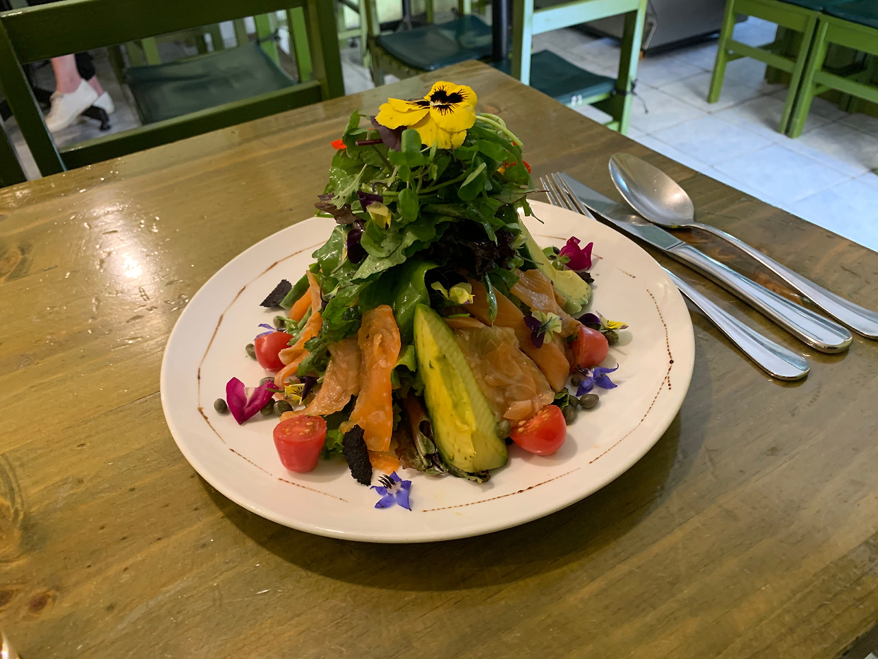 한참을 울고 나니 슬슬 배가 고프다. 어쩌면 배고픔의 온도가 얼음을 가장 빨리 녹이는지도 모르겠다. 한참 울었으니 오늘은 정말 맛있는 걸 먹어야겠다고 생각했지만, 입맛이 없어서 간단하게 샐러드를 먹으러 갔다. 화려한 꽃 장식을 올린 연어샐러드였는데, 쿠스코에서 맛볼 수 있는 가장 신선한 요리였을 거 같다. 물론 맛도 좋았다.