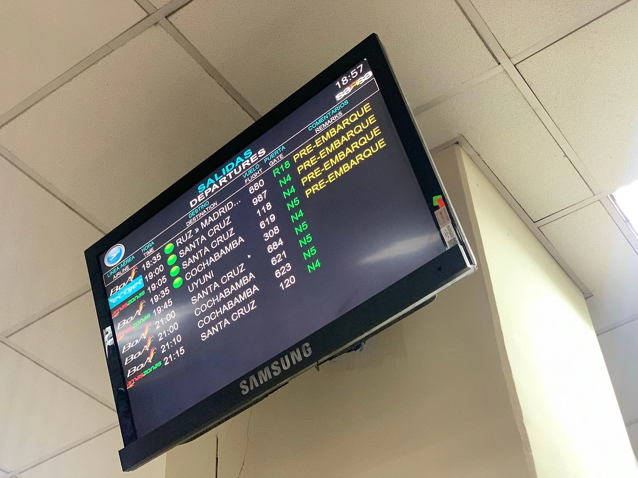 쿠스코에서 출발하는 우유니행 비행기는 직항이 없어 수도인 라파즈를 경유해야 했다. 원래 비행 스케줄대로라면 라파즈공항에서 두 시간 대기였지만, 언제 출발이 승인될지 모르는 상황에서 무작정 대기해야 했다. 다행히, 라운지(유료이용)가 있어 인터넷을 하며 시간을 보낼 수 있었다. 수시로 전광판을 확인하며, 비행스케줄이 확정되길 기다렸다. 사위가 어두워지자 창밖에 후드득 비도 떨어진다. 과연 오늘 안에 비행기가 출발하기는 하는 걸까 조마조마했다. 다행히 7시간 대기 후, 드디어 우유니행 비행기에 오를 수 있었다.