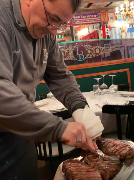 이 스테이크 하우스의 하이라이트는 바로 숟가락으로 스테이크를 커팅하는 퍼포먼스다. 그만큼 스테이크의 육질이 부드럽다는 걸 보여주는 상징이다. 나이 지긋한 서버가 숟가락과 포크를 세 번 탁탁탁 부딪치고, 이내 숟가락으로 스테이크를 숭덩숭덩 자른다. 3분의 2쯤 자르고 잘린 단면을 보여주며 'bien(좋지)'하고 읊조린 후, 각각 접시 앞에 놓아준다. 이 레스토랑의 역사, 스테이크 그리고 그들의 연출(?)에 대단한 자부심이 느껴지는 바이브를 뽐냈다.