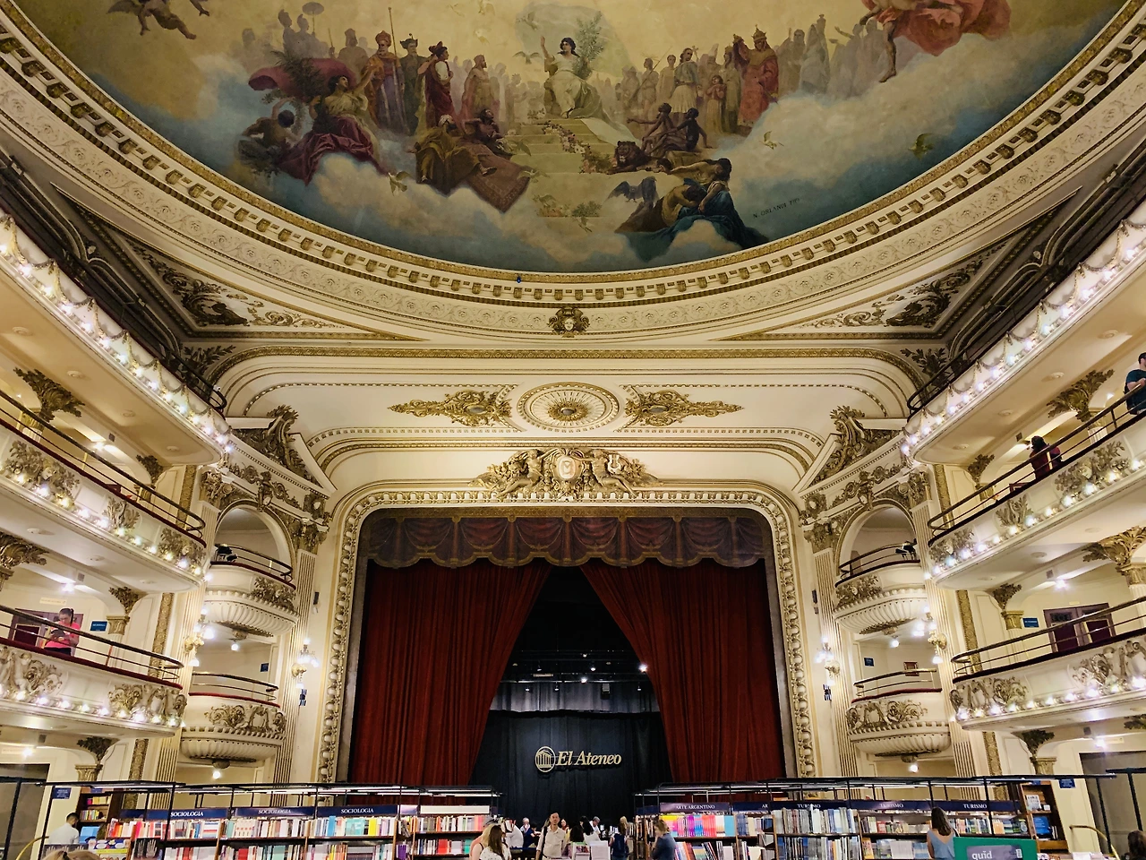 이번에는 2019년 내셔널지오그래픽에서 '세계에서 가장 아름다운 서점'으로 선정된 ‘Al Ateno’다. 이곳은 1919년 오페라, 땅고 공연장으로 오픈하였으나, 2000년 오페라 극장의 모습을 그대로 살려 서점으로 재오픈했다. 높은 층고의 무대, 화려한 객석의 문양, 그리고 천장의 벽화를 한눈에 담으면 왜 가장 아름다운 서점이 될 수밖에 없는지 명확히 알 수 있다. (TMI. 부에노스 아이레스는 인구 대비 서점의 수가 가장 많은 도시 중 하나다.)