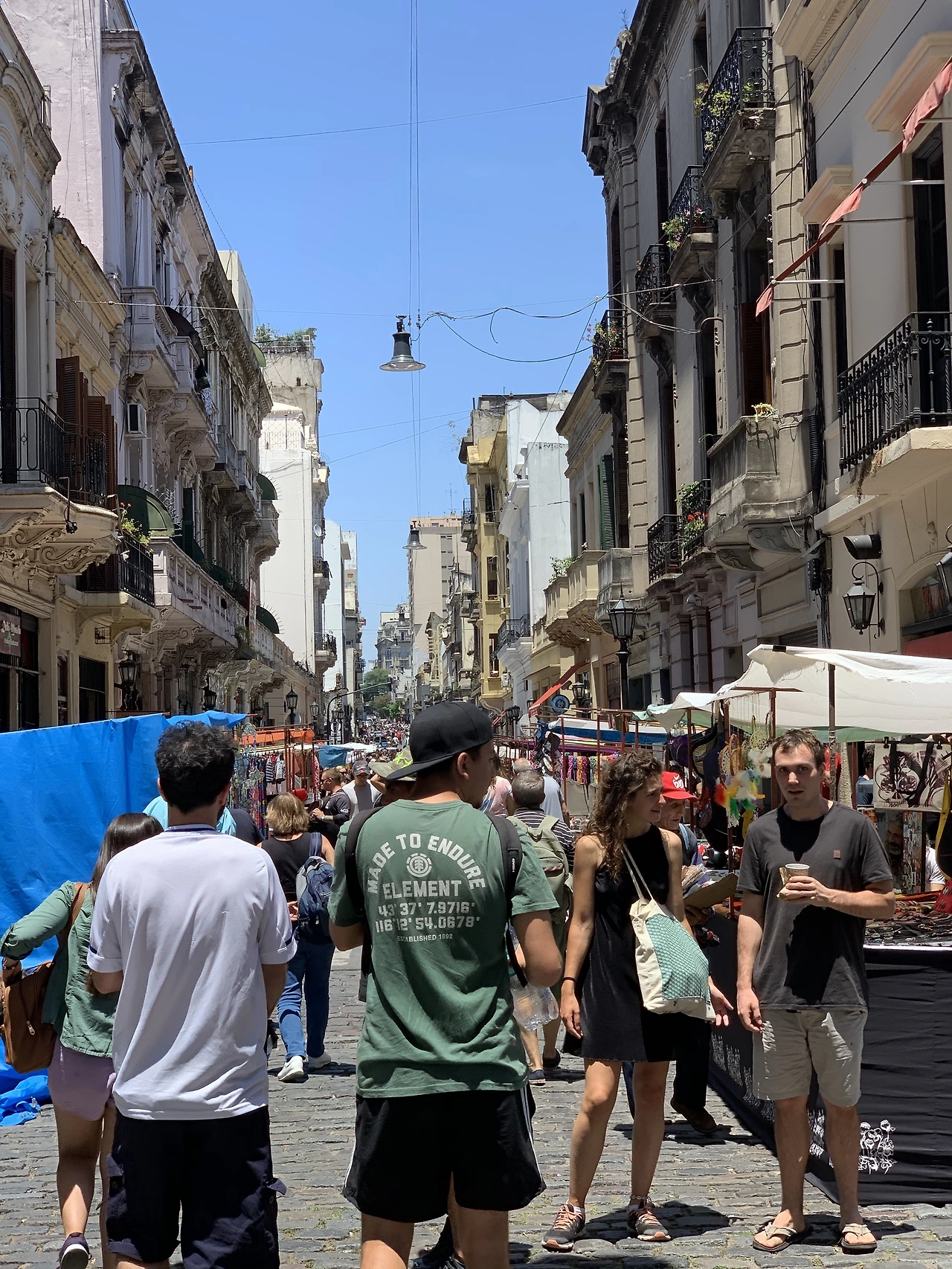 부에노스 아이레스에서 가장 크고 유명한 수공예마켓인 산텔모마켓은 일요일만 오픈한다. (보통 다른 마켓들도 주로 주말에 오픈한다.) 마침 여행 이튿날이 일요일어서 자연스럽게 산텔모마켓을 시작으로 여행동선을 짰다. 여행 막바지라 친구들에게 줄 기념품을 사려고 열심히 둘러보았지만, 꼭 마음에 드는 걸 발견하지는 못했다. 정말 기대하면 안 되는 곳이다. 사람이 너무 많아서 정신이 없고, 소매치기도 조심해야 한다. 시장이 끝날 즈음 겨우 팔찌 몇 개를 골랐는데, 하나는 내 손목에 채우고 나머지는 봉지째 고스란히 잃어버렸다. (TMI. 이후 6개월 동안 체류하면서 서너 번 더 갔었는데, 갈 때마다 느끼는 거지만 정말 살 만한 게 없다. 그리고 이제는 기대만큼 저렴하지도 않다.)