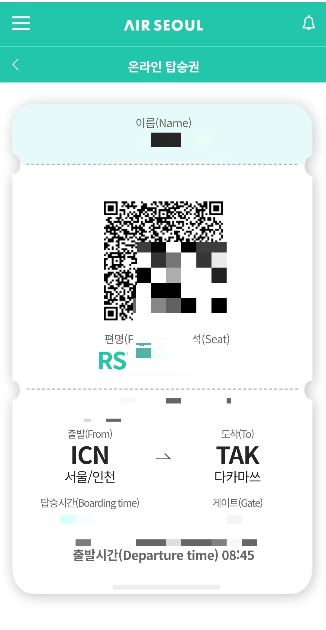 다카마쓰 항공기는 최근 LCC항공사에서 취항이 늘었다. 가격대는 왕복 20만 원대로 이용이 가능하며 비행시간은 대략 1시간 45분 정도 소요되는 거리다. 티켓은 대략 한 달 전 다카마쓰행을 예약했다.
