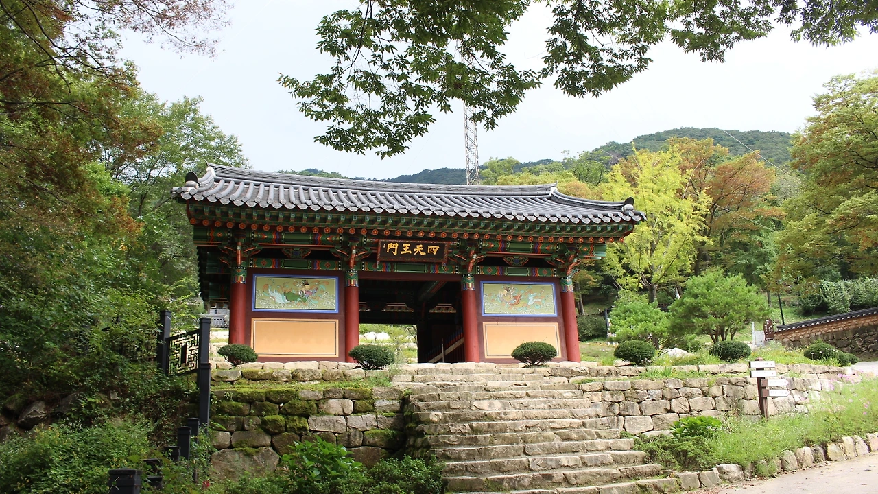 이제 점점 내 마음을 가다듬고 해탈한 마음으로 사천왕문을 만난다. 문 안에 들어서 만나는 사천왕과, 그 길을 통과해서 나와 만나는 계단위로 보이는 길을 따라 올라 오래된 단풍나무를 만나러 가는 길이다.