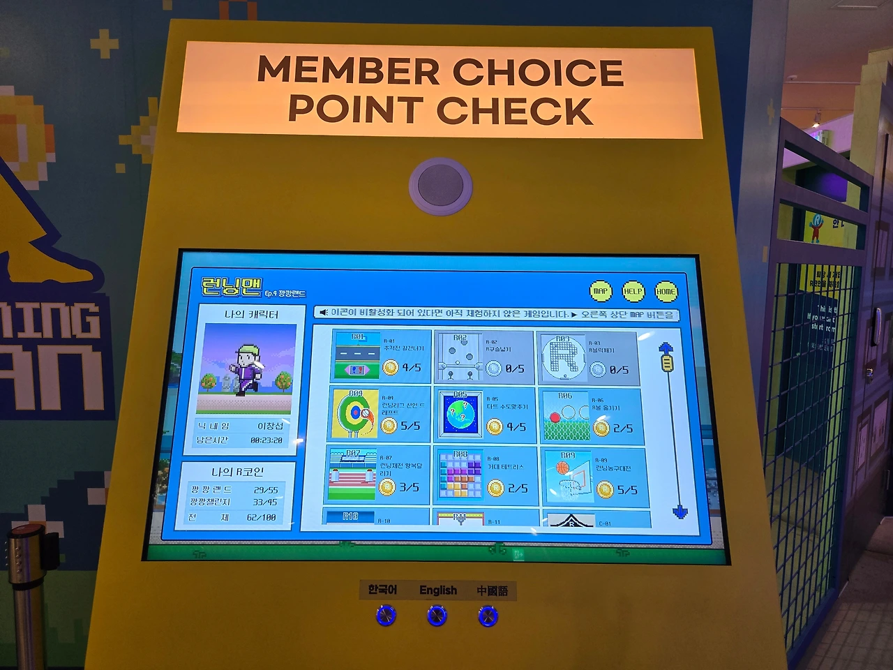 내가 마음껏 열심히 게임을 하고 싶다면, 이제는 포인트를 정리해 보자. 실내 곳곳에 포인트를 체크할 수 있는 기기가 있다. 게임을 하고 난 다음 밴드를 태그 하면, 내가 참여한 게임과, 나의 게임포인트를 얼마나 받았는지를 확인해 볼 수 있다. 획득한 코인이 많을수록, 획득한 점수를 알아볼 수 있으며, 입장에서부터 한 시간 동안 게임을 진행하기 때문에 내가 남은 시간도 체크해 볼 수 있다.
