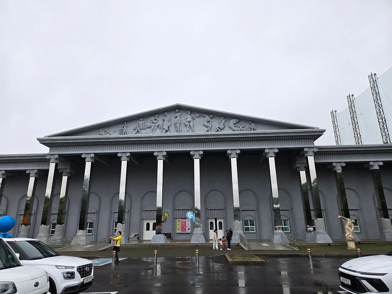 런닝맨은 중문관광단지 내에 위치하고 있어서 중문 관광지와 연계해서 다녀오기에도 좋다. 앞에는 넓은 주차장이 있기 때문에 어렵지 않게 주차를 할 수 있다. 바로 앞에는 거대한 페디먼트를 가진 파르테논 신전처럼 만들어진 건물이 우뚝 서 있어서 인증샷으로 재미있는 뷰로 사진을 담아주기에도 좋다.