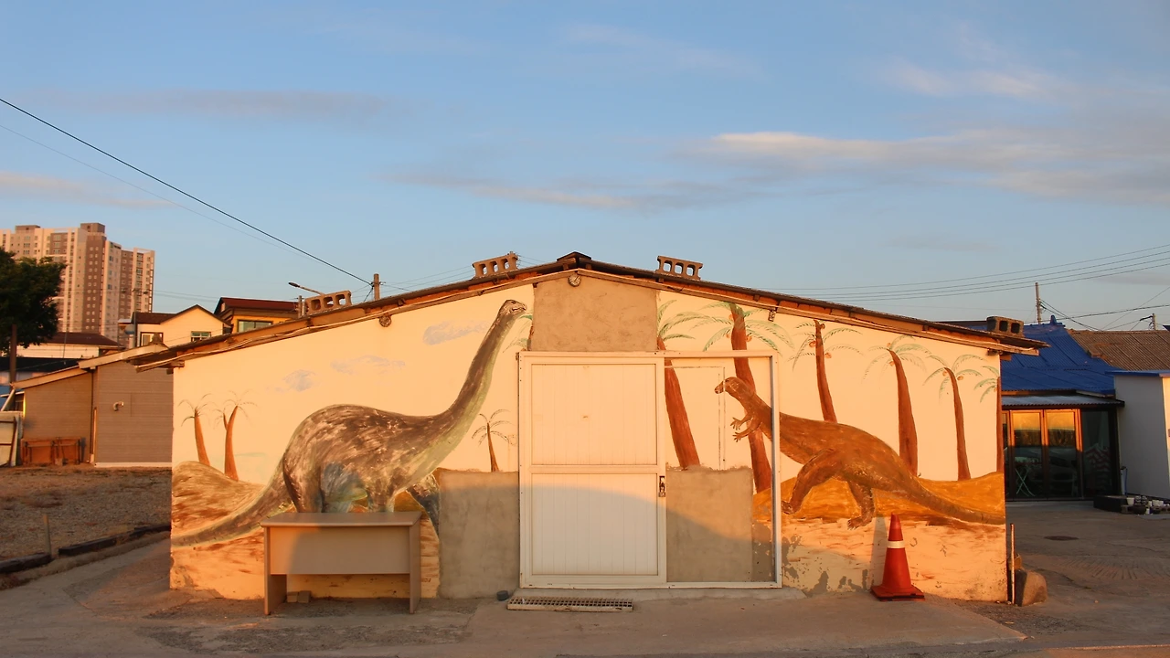 천진해변을 걷다 만나는 공룡친구들. 이 집이랑 너무나 잘 어울리는 입면 아닌가? 사실 아침을 먹으러 갔던 길에 다시 봤는데 이런 느낌이 아니다 역시 시간과 색감도 참 중요하구나 싶다. 이렇게 해가 오를 때 비춰지는 색깔에 있으니 공룡도 더욱 생동감 있는 모습, 다른 곳과 달리 너무 귀엽게공룡을 표현하지 않아서 더 마음에 드네.