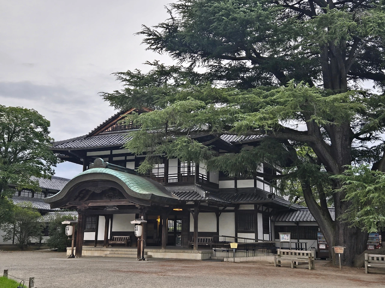 1899년 '가가와현 박물관'으로 건축되어, 본관, 서관, 동관, 북관이 복도로 이어진 회랑구조를 하고 있는 곳이다. 리쓰린공원 정보 및 공예품전시 등을 하고 있고, 세계적으로 유명한 가구 디자이너 조지 나카시마의 테이블과 의자도 전시되어 있다고 한다.
