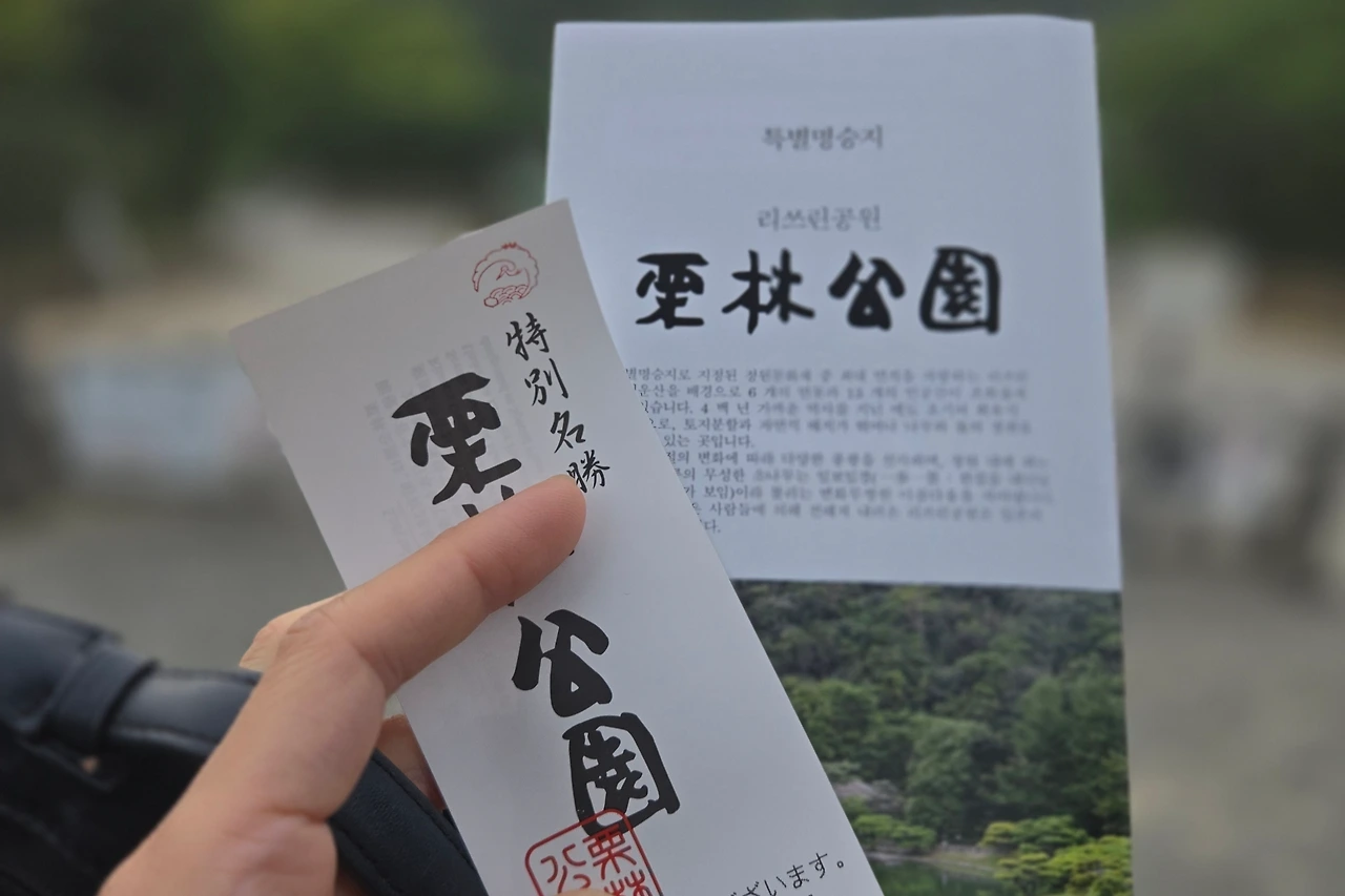 입장권을 구매했다. 우리나라 안내서도 있어서 같이 한 장 들고 리쓰린공원 산책을 시작하기로 했다.