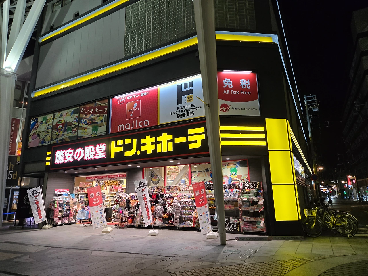 돈키호테는 24시간 운영이라 늦은 밤에도 방문이 가능했다. 사실 다카마쓰 시내가 그리 북적이는 곳이 아니라서 한밤중에 너무 다니는건 조금 위험할 수 있으니 주의는 필요하다. 호텔에서 그리 멀지 않은 거리였다. 두블럭 지나 만난 돈키호테는 1,2층으로 구성되어 있었지만, 밤이 되면 드럭을 구매할 수 없었기 때문에 크게 면세범위까지 금액을 채우진 못할 것 같아, 이날 구매는 하지 않았다. 하지만, 언제가도 재미있는 구경 거리가 많은 만큼, 돈키호테에서 소소한 아이템을 구경하는 재미가 있다.