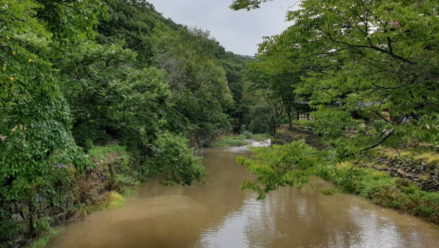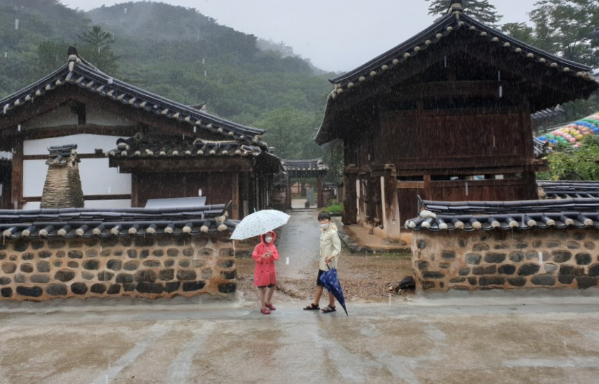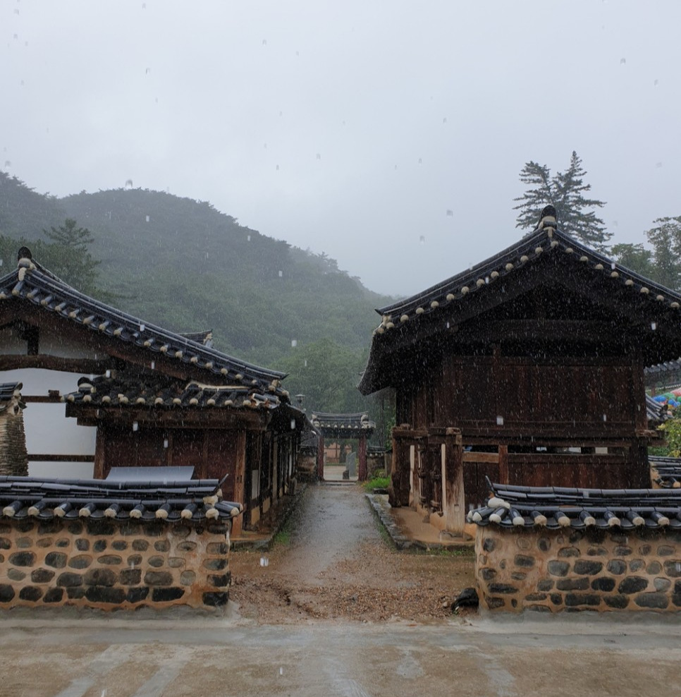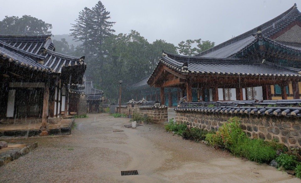 정말 억수같이 내렸다. 물론 장마철이 비 피해에 비하면 큰 비가 아닐지 모르지만, 밖에 나와 걷는동안에 갑작스레 만난 비에 살짝 당황하게 되었던 날. 그래도 이렇게 걸으면서 만나는 빗소리와 살짝 우중충한 날씨 여기에 한옥과 돌담, 그리고 후두둑 땅과 마주시는 소리가 마곡사의 기억을 한층 더 생생하게 해주었다.