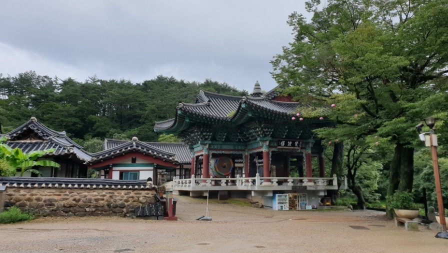 그렇게 입구 즈음에서 만난 거대한 종이 있던 운암당. 그곳으로 적혀있는 템플스테이 이정표가 가장 가까웠기에 뒤쪽으로 불쑥 튀어 올라 보이는 한옥이 있는 템플스테이 쪽으로 이동해본다.