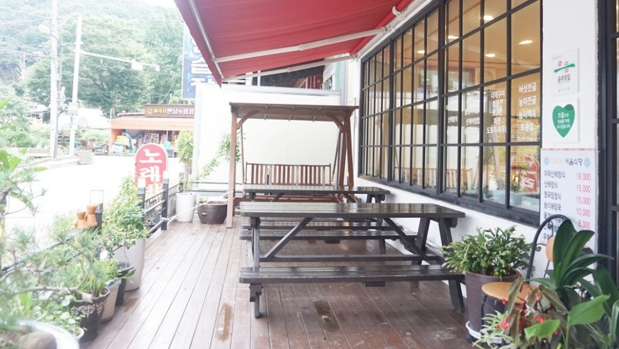 메뉴는 다들 비슷하다. 그 중에서 마음에 드는 집은 앞에 나무그네가 있어 아이들이 쪼르르 달려갔던 식당으로 선택했다.