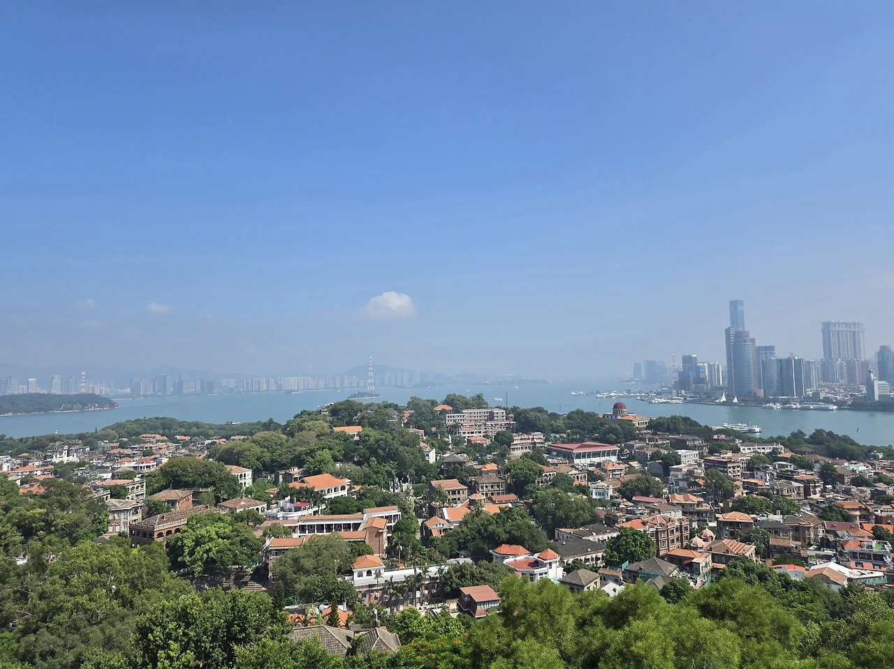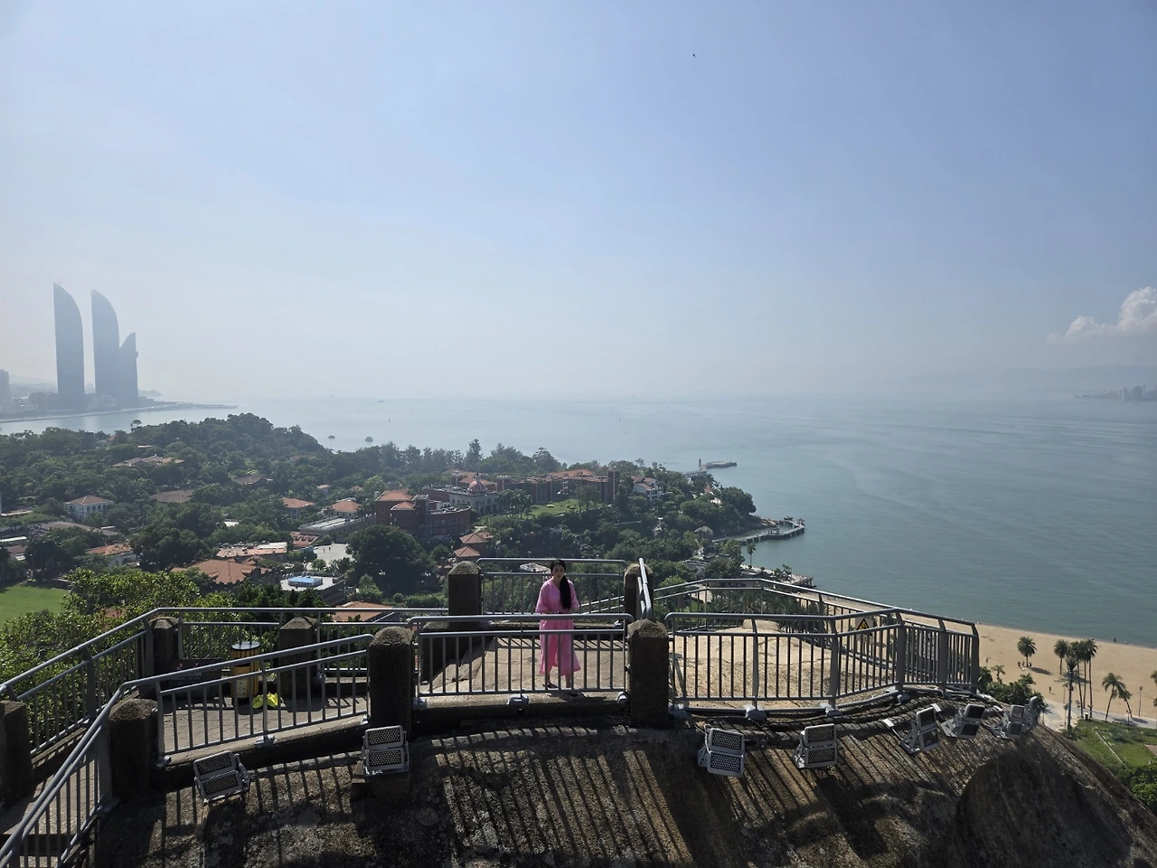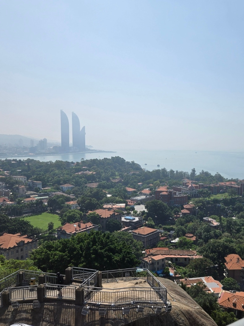 드디어 도착한 일광암은 시원함 그 자체였다. 꼭대기에 올라왔음에 속이 시원함. 아무것도 없는 하늘과 오롯이 나만 있는 시원함, 막힘없는 뷰의 시원함, 그리고 드디어 불어오는 바람의 시원함에 여태 올라온 힘듦은 그새 사라지는 듯했다. 샤먼 본섬과도 거리가 있어서, 섬과 섬 사이의 거리에 아무것도 없기 때문에 더욱 오픈된 모습이 너무나 시원한 일광암이었다. 근거리에 보이는 큰 건물이 없기에 답답함이 전혀 없이, 나도 모르게 웃음과 속 시원함이 튀어나오는 거대한 숨소리가 느껴지는 순간. 끝이 어딜까 하는 순간에 만난 전망대의 시원함은 구랑위를 매력을 흠뻑 느끼게 해 주었다.