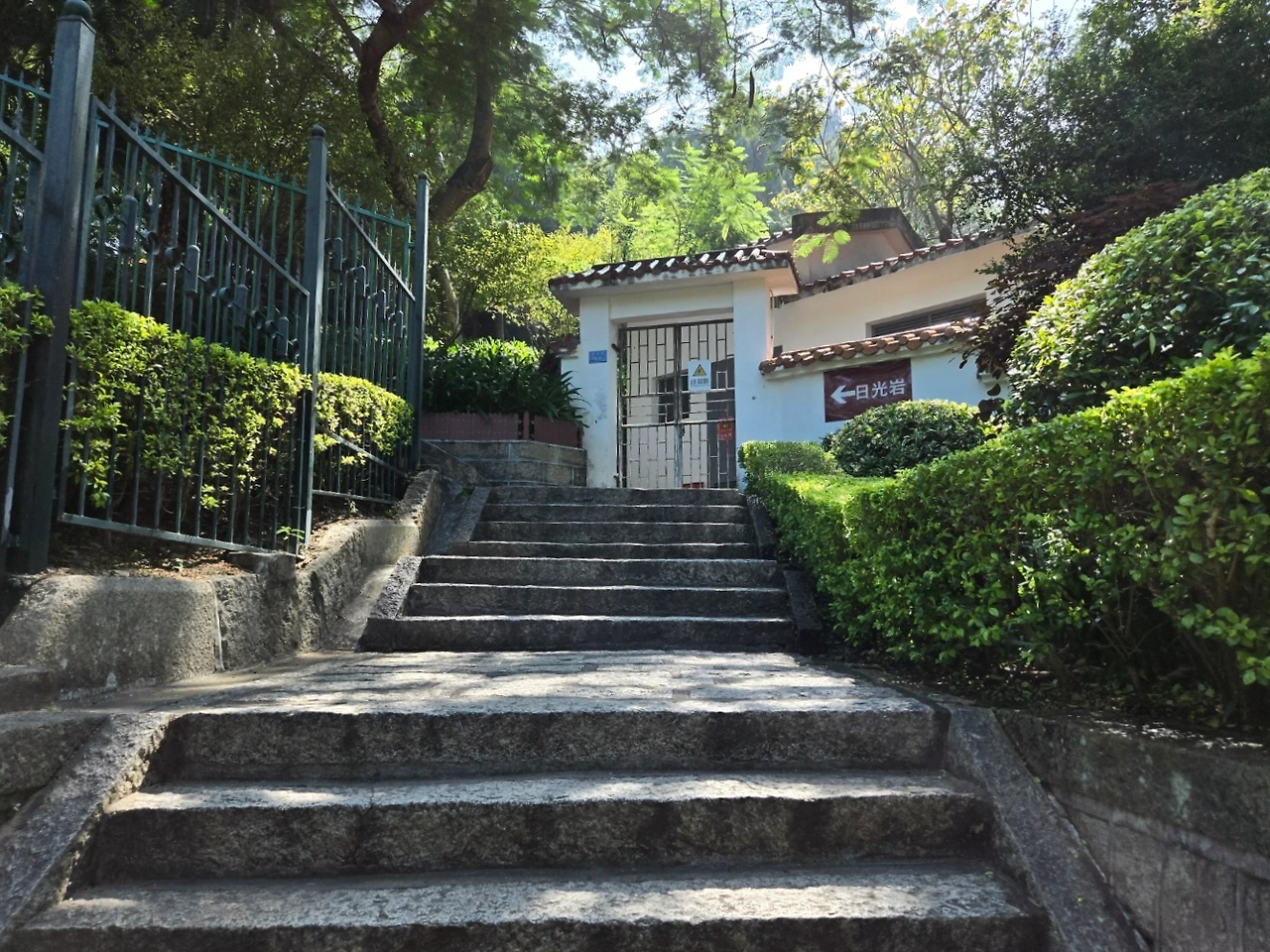 여유로운 바닷가를 시작으로 일광암으로 가는 길은 오르락내리락하는 길에서 힘들기는 했지만, 구랑위의 모든 곳이 그러하듯이 근대건축물들이 양쪽으로 이어지는 길은 곳곳에 색다름을 느끼기 충분했던 골목길투어였다. 앞으로 오르는 길을 뒤돌아 보면 어느새 올라와 바라보는 샤먼의 바다뷰를 느낄 수 있었고, 고층건물 없이 옛 조계지의 모습을 담고 있는 구랑위였기에, 위로 올려다보면 하늘과 야자수, 그리고 그 사이에 나지막한 담벼락에 옛정취가 물씬 느껴지는 건축물들을 구경하기에도 좋았다. 무더운 날씨였지만, 일광암 가는 길은 구랑위의 골목 산책길에서 만나는 조용함도 있었다.