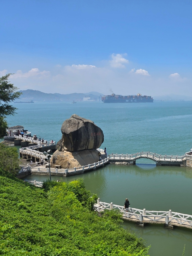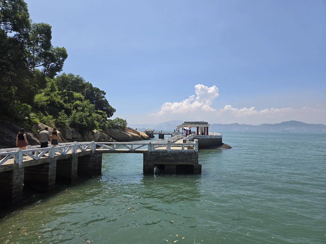 그렇게 힘들었던 일광암에서 숙장화원으로 가는 길은 또 구경하는 재미가 있었다. 일광암이 오르고 올라서 다다른 곳이었다면, 숙장화원은 해안가에 위치한 정말 중국의 자연와 건축의 미를 가진 정원이었기에 바닷가로 내려가는 편안함과 바람과 시원함을 가까이 만나러 가는 길의 그늘과 볼거리가 더욱 흥미로워 보였다. 사람들이 점점 더 북적이기 시작했고, 구랑위에 들어와 처음 해안가에 들어섰을 때처럼, 점점 해안가로 가까워지며, 산책하고 쉬어가기 좋은 평지 산책로가 더욱 넓게 나타나기 시작했다.