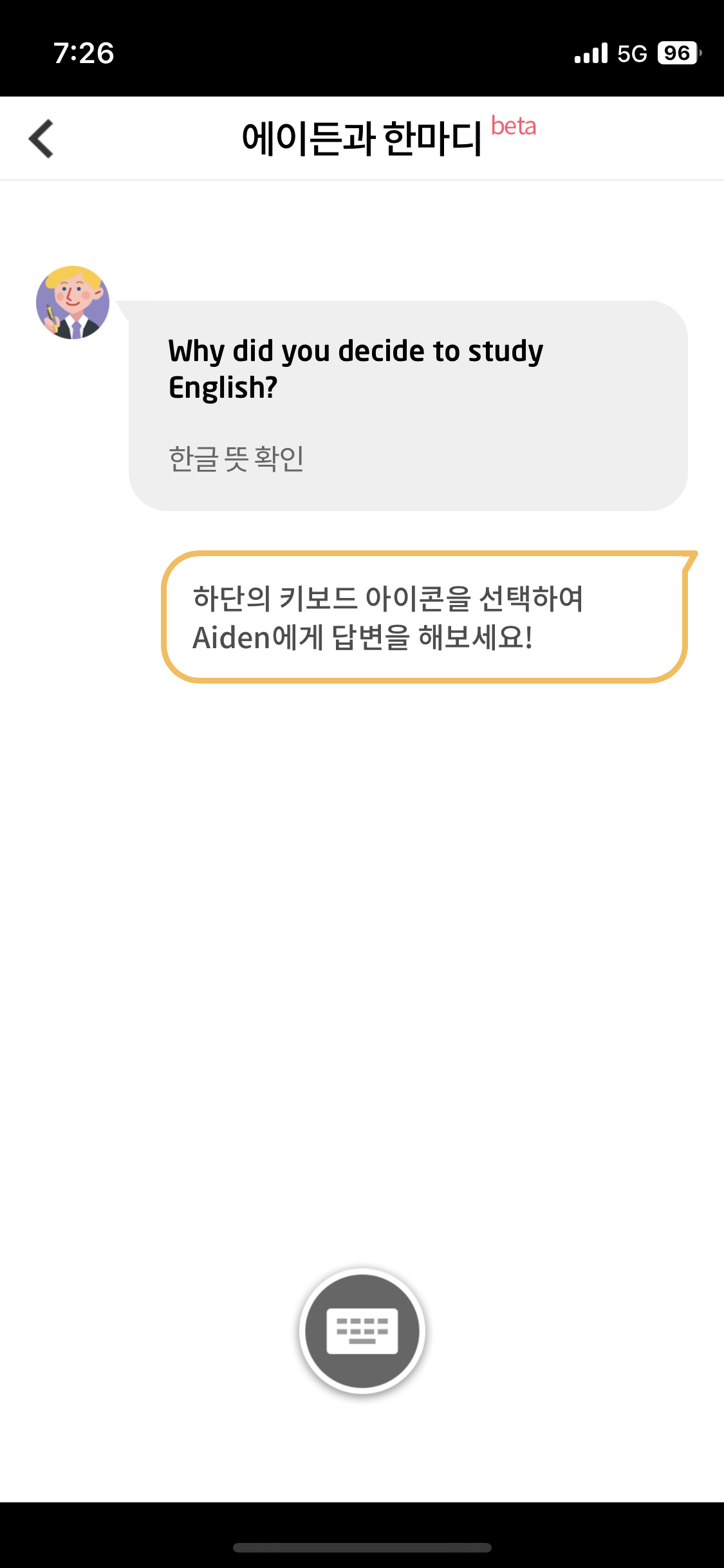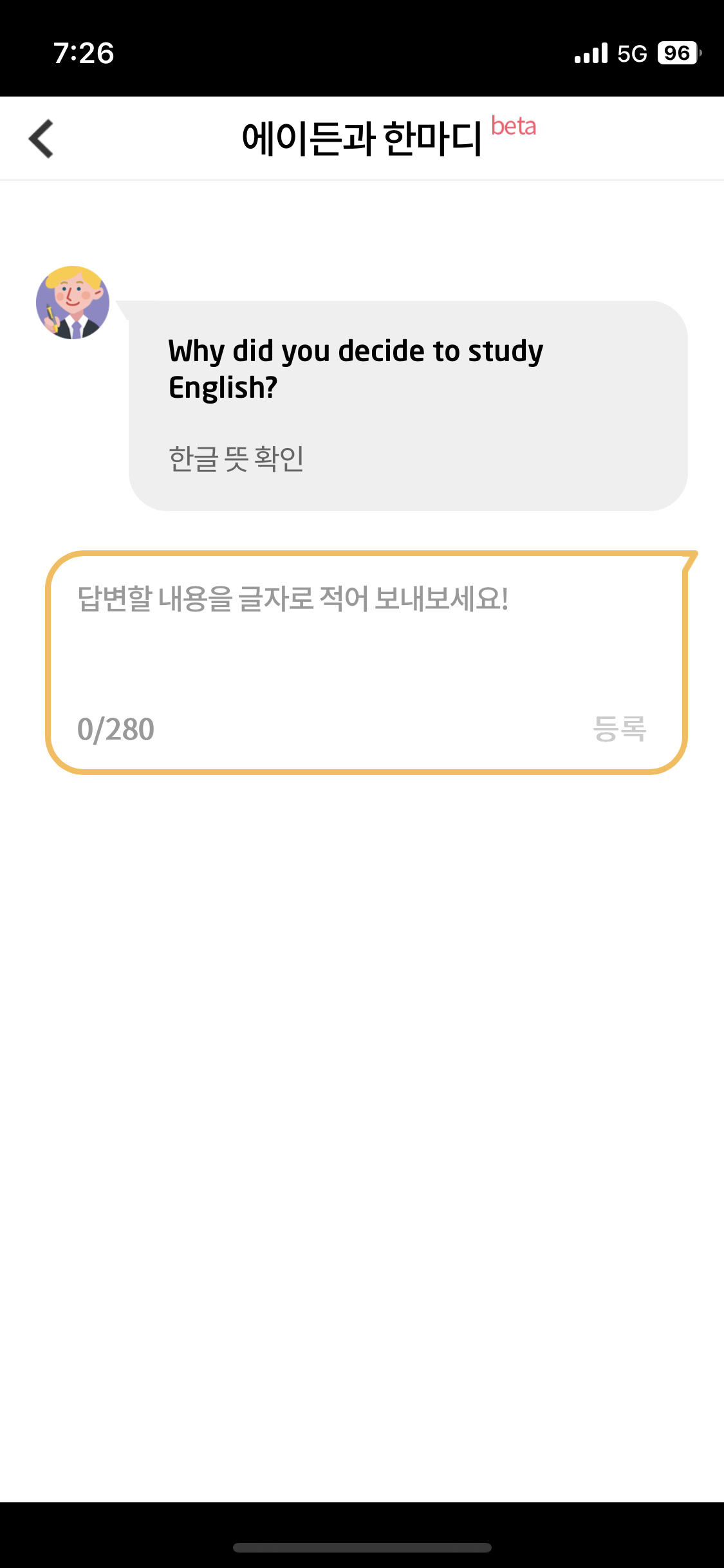 회색 말풍선이 AI가 제공하는 오늘의 질문 영역이고