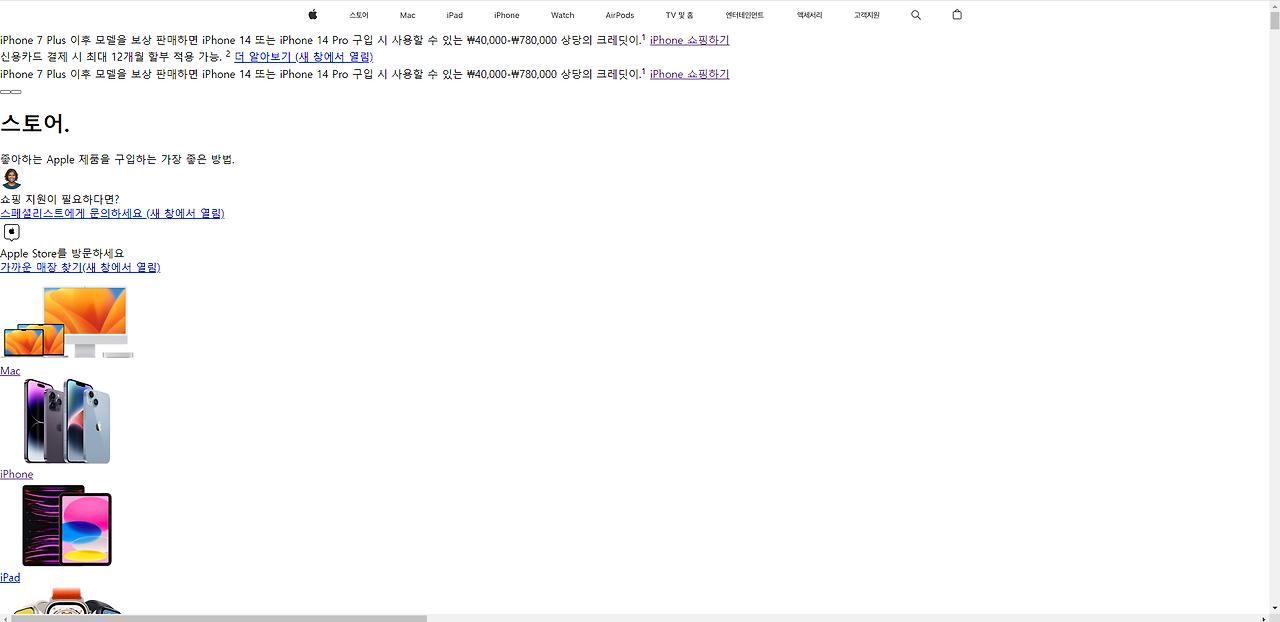 위에서 본 Apple 홈페이지의 CSS를 제거하면 이런식으로 표출이 된다.