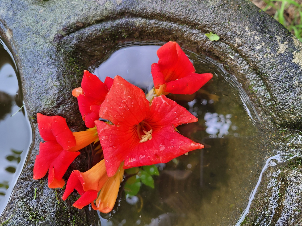 흐드러지게 핀 꽃이 집터를 주황빛으로 물들이고 있던 50년 넘은 능소화의 자태는 사진으로 보는 것만으로도 힐링이 되던데....... 3년의 시간에도 수형조차 잡아주지 못한 우리 집 능소화를 보면서 더욱 안타까운 마음이다. 올해는 부지런히 가지를 잘라 위로 모아주었으니, 내년엔 좀 더 풍성한 추파춥스형 능소화가 되어주길 기다린다.