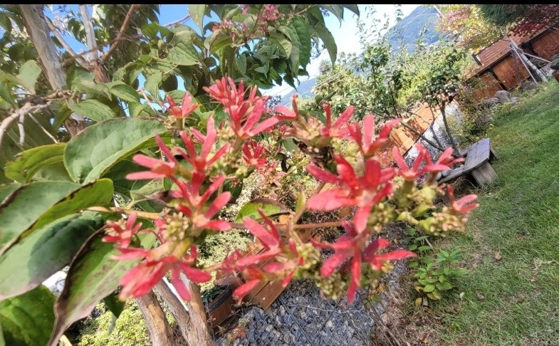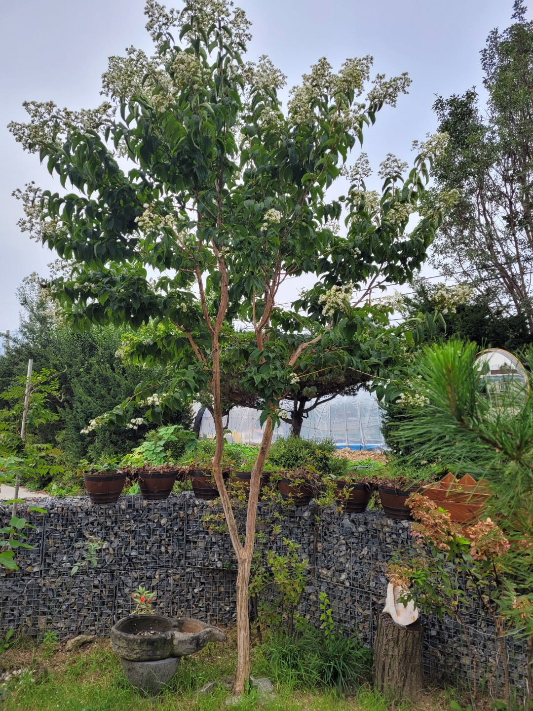 일곱 송이의 꽃을 피워 칠자화라고 불리는 이 나무는 향이 무척 좋아 꽃이 피면 벌들이 엄청 찾아오는데, 미국에서는 벌꿀을 얻는 밀원식물로 알려져 있다. 여름에 하얀 꽃이 피어나 가을이 되면 빨갛게 변하여 꽃의 색이 바뀐다고 생각하기 쉽지만 사실 빨간 것은 꽃이 아니라 꽃이 지고 난 후의 꽃받침이라고 한다. 꽃이 됐든 꽃받침이 됐든 하얀 꽃에서 빨간 꽃받침까지, 여름부터 가을까지 즐길 수 있으니 어찌 좋지 아니한가. '풍요로운 삶의 영위'라는 꽃말 그 자체로구나!