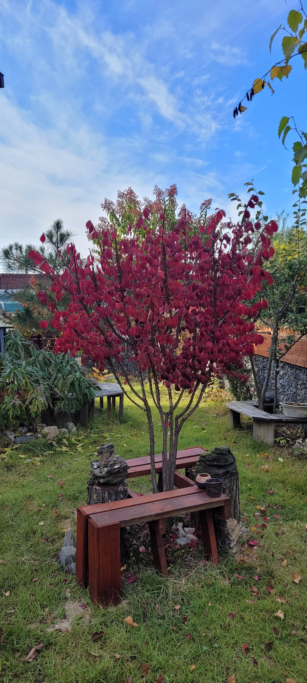 자리를 옮겨주며 가지를 많이 쳐주었더니 원래보다 수형은 덜 예쁜데도, 화살나무가 "거봐, 여기가 내 자리 맡지?!"라며 빨갛게 물든 잎을 뽐내는 것만 같다.