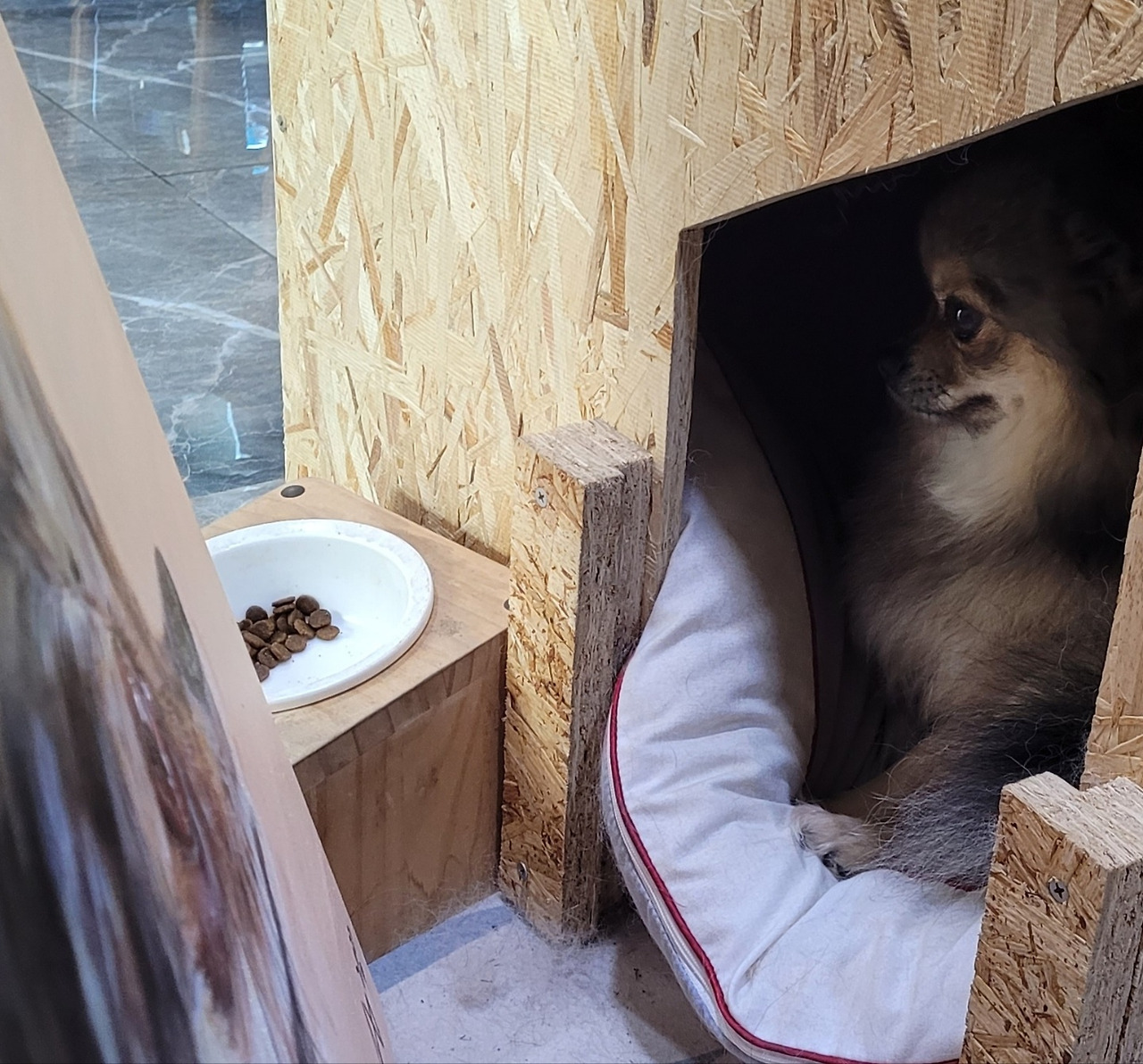 코코는 마음에 들지 않는지, 너무 큰 그림이 무서운 건지, 그림을 들이대자 피하기 바쁘다.