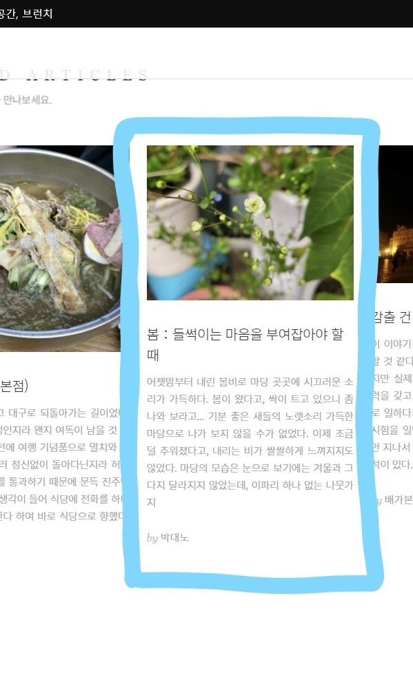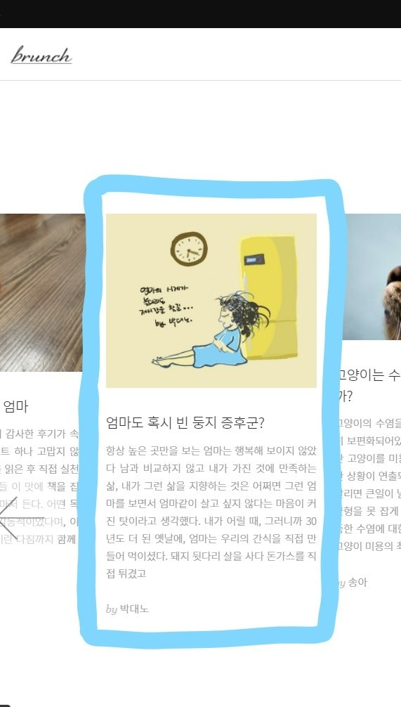 어떤 기준으로 포털 사이트나 브런치 홈에 오르는지를 모르겠지만 (누군가는 AI 알고리즘의 딜레마라고도 한다), 글쓰기 초짜인 나는 내 글이 그런 곳에서 발견되는 것만으로도 신나고 감사하다.