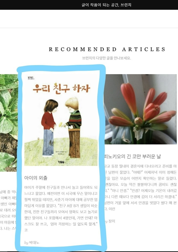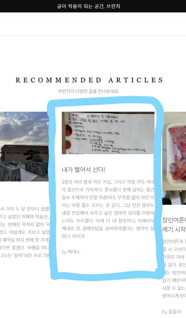 운이 좋게도 많은 글들이 다음 포털 사이트나 브런치 Recommended Articles에 올라갔다.