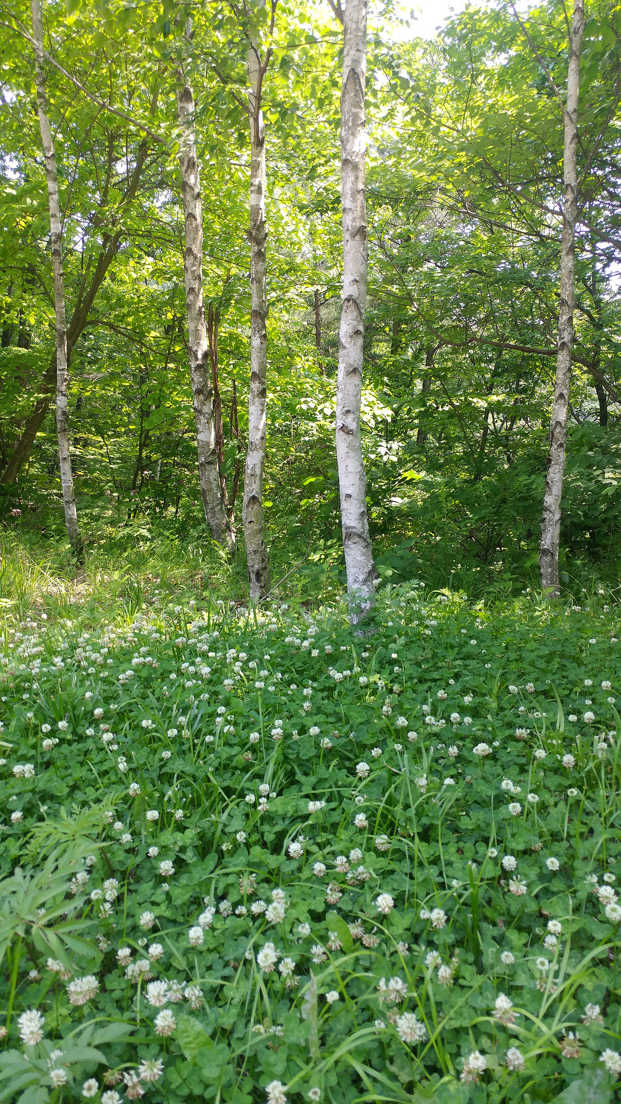 자작나무 그늘아래 자리를 깔고 누워서 하늘을 보라보니 좋구나.