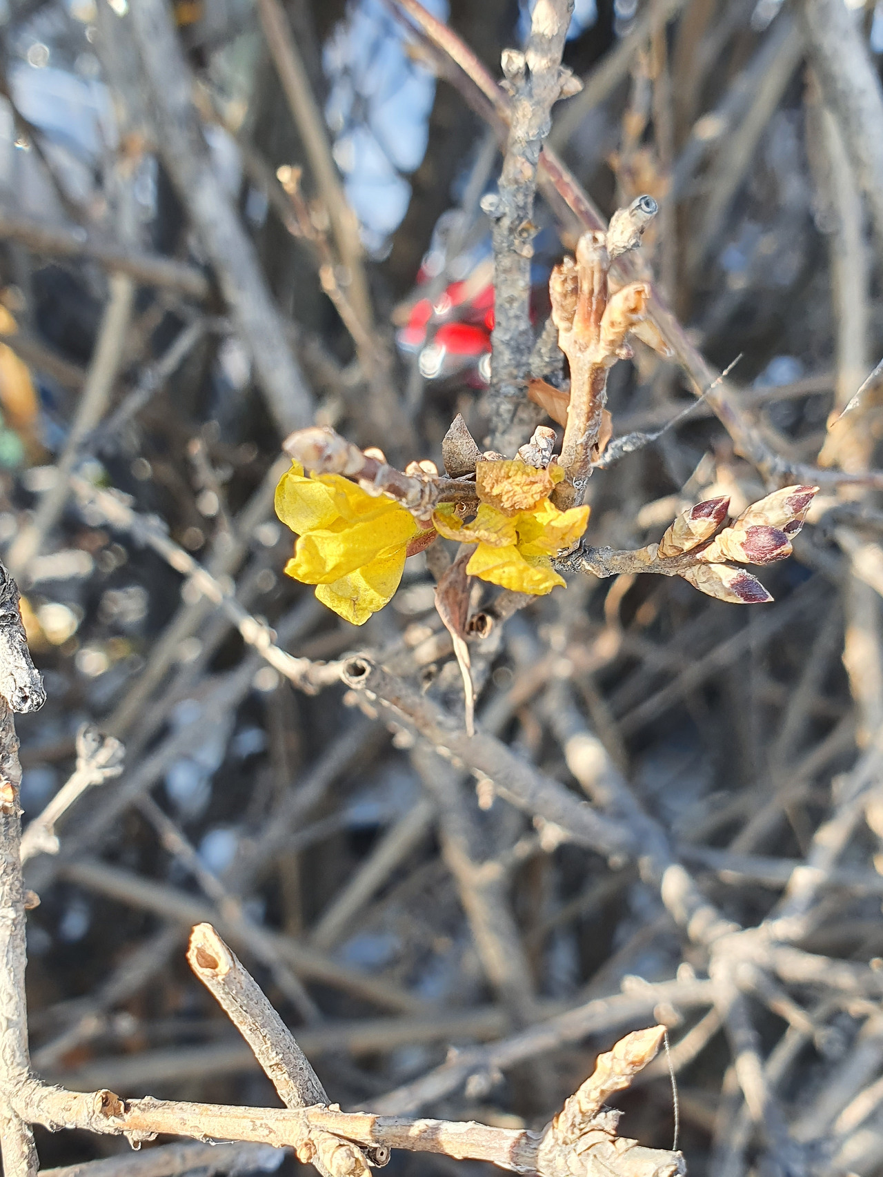 겨울에 피어난 개나리꽃