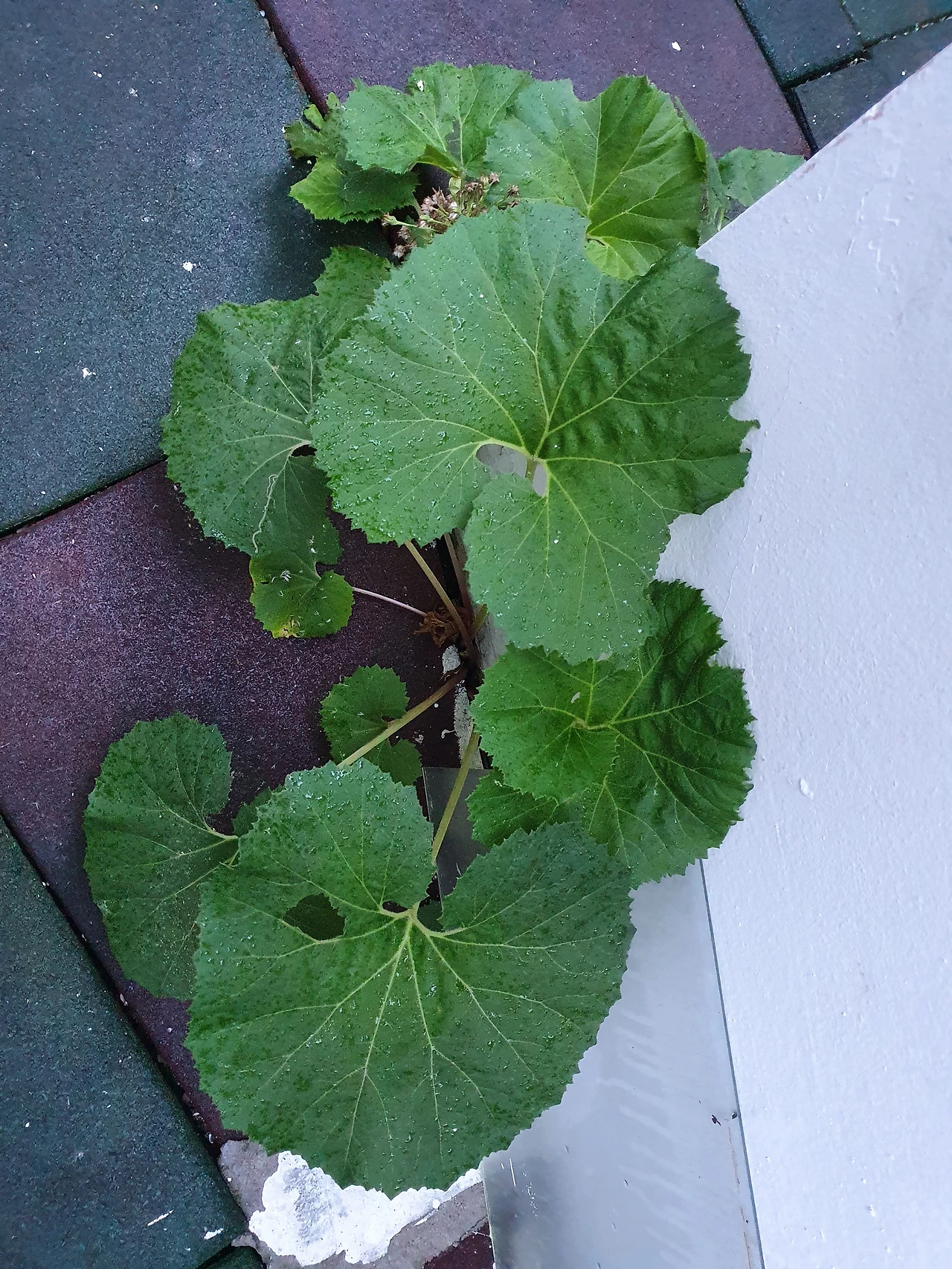 담장 밑에 심어놓은 머위순들이