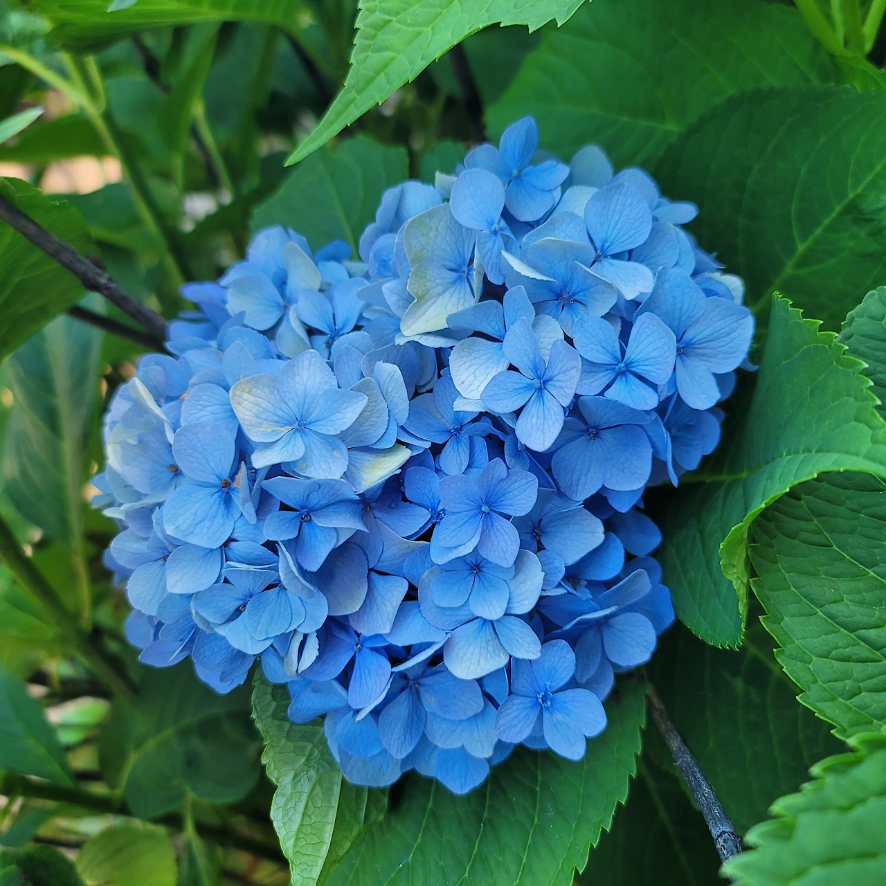 푸른빛에 수국은 칠월하늘색처럼 빛났다.
