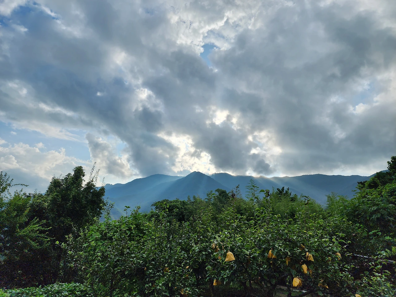 일을 마치고 고개를 드니 오른 편의 청학이 골 형제봉에서는 지는 해와 구름이 빛의 조화를 연출하고 있었다.