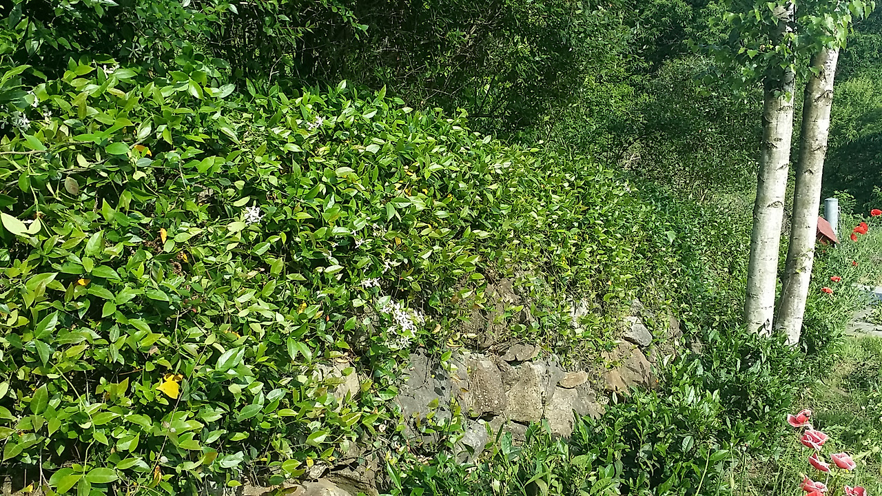 산기슭 여기 내 처소인 길뫼재의 한 쪽 돌담은 온통 마삭줄에 점령 당하고 있다.