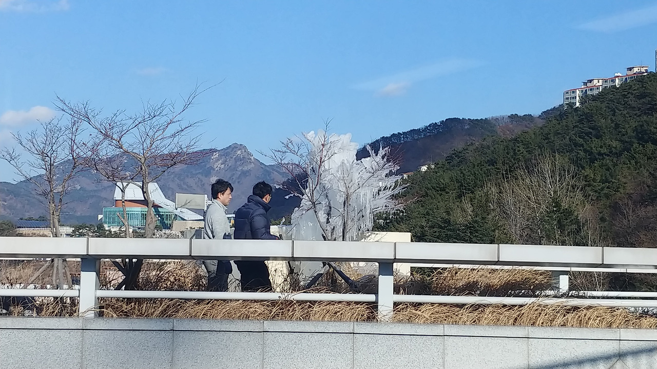 악양 들판에 많은 눈이 내린 그 날, 조심 운전하여 부산에 왔는데 부산에서도 부산 눈치고는 제법 내려 있었다. 돌아온 이튿날 찾아간 구포 도서관, 우리나라 말 아닌 말하기와 팝을 이끌던 회원이 나지막하게 탄성을 지르며 “저기 밖을 좀 보세요. 저기 창밖을!” 한다. 보니 나무 한 그루가 얼음꽃이 되어 있었다. 저 나무, 얼음 나무를 보는 순간, Edelweiss의 꽃과 I have a dream의 동화와 어울리는 장치라는 생각이 내 머리를 스쳤다. 머리에서 가슴으로 왔다. 아니, 가슴에서 머리로 간 것인지도 모르겠다.