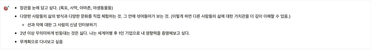 사실 여행 중에는 힘든 순간이 더 많았다. 여행을 시작하고 3개월쯤부터는 늘 쉬고 싶었고, 누워있고 싶었다. 여행 초반처럼 도전적이지 못한 스스로가 늘 아쉬웠다. 그렇게 몇개월을 버티다가 한국에 돌아온 후, 배낭여행을 처음 계획할 때 써내려갔던 소망을 읽고 놀랐다.