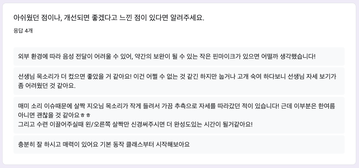프로그램을 준비할 때 마다 모든 동작을 처음부터 공부해야 돼서 부담이 컸다. 요가에 대한 지식이 깊어지면 훨씬 재밌게 준비할 수 있을 것 같다.