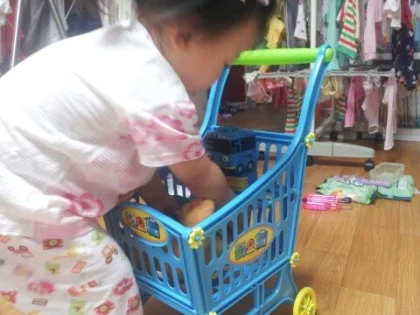사진 속 빨래들을 요리조리 피해 가며 재미있게 놀아준 고마운 아기.