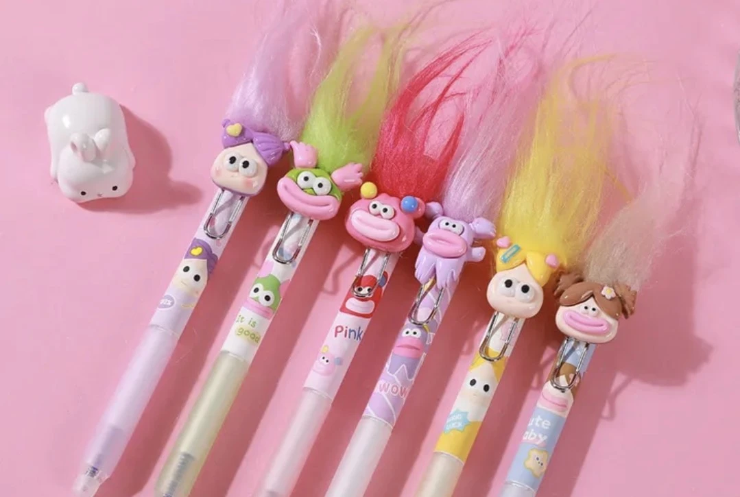 볼펜을 사서 머리를 땋아주고 있다.