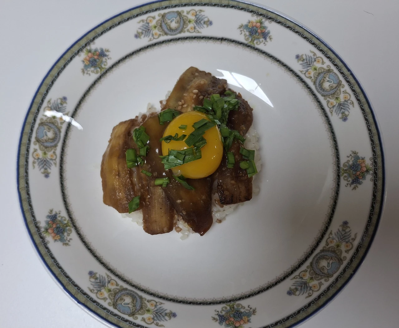 오늘은 껍질을 다 벗겨 부드럽게 덮밥으로 내어줬다.