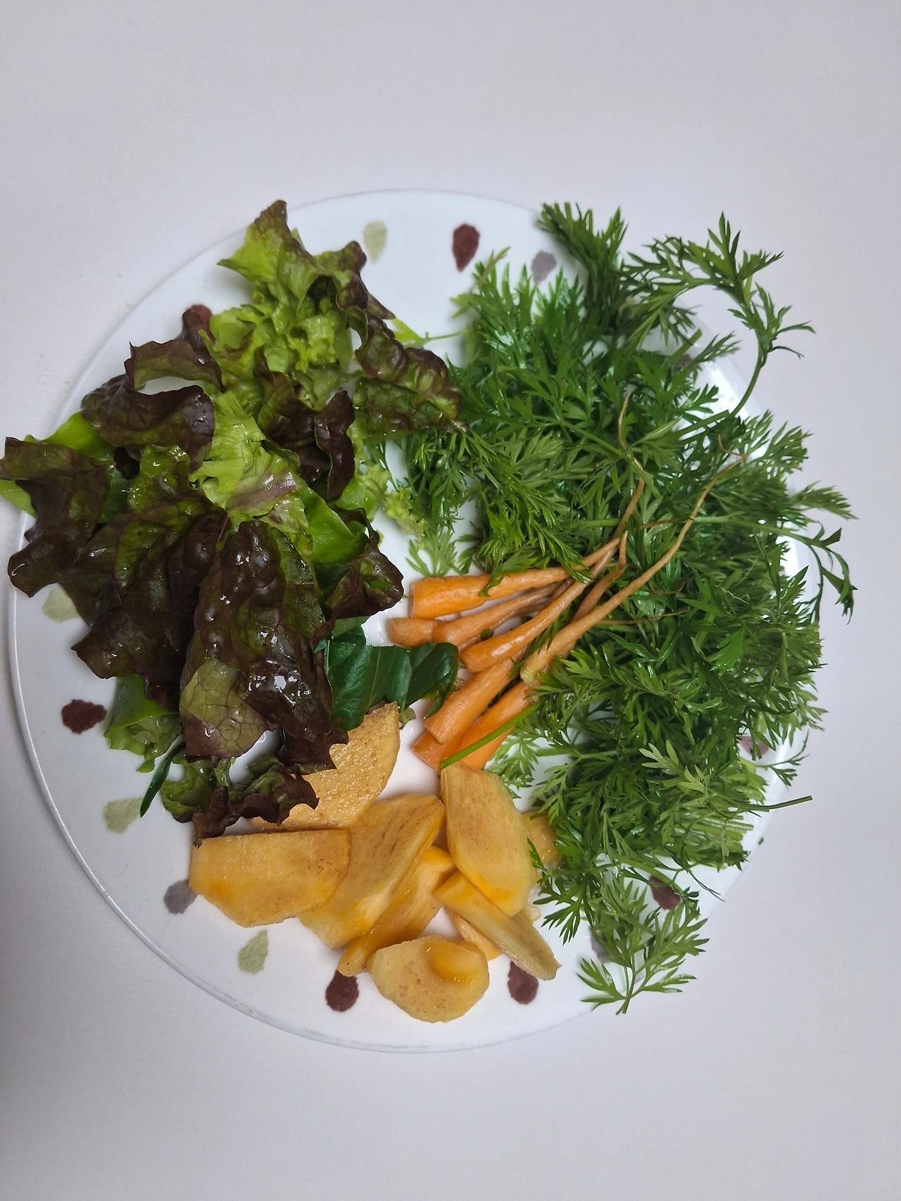 유기농 당근은 새끼손가락만 한데 먹으면서도 웃음이 났다.